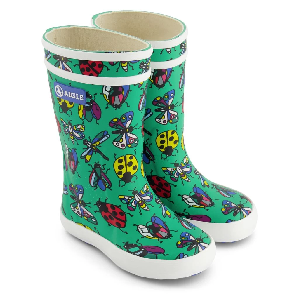 Time to jump through puddles. Time to jump through puddles. Green Lolly Pop rain boots by Aigle. The boots have a natural rubber upper.