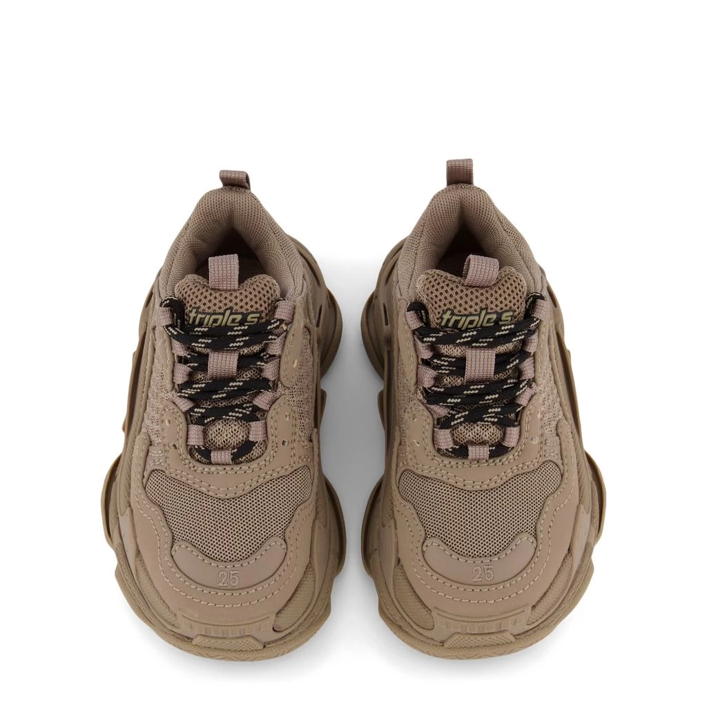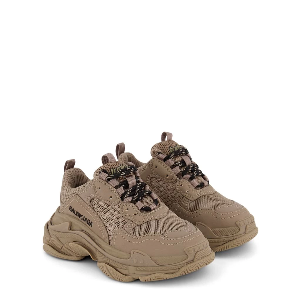 Kids’ sneakers that look and feel great. Beige Triple S sneakers by Balenciaga. The sneakers have a lace closure.