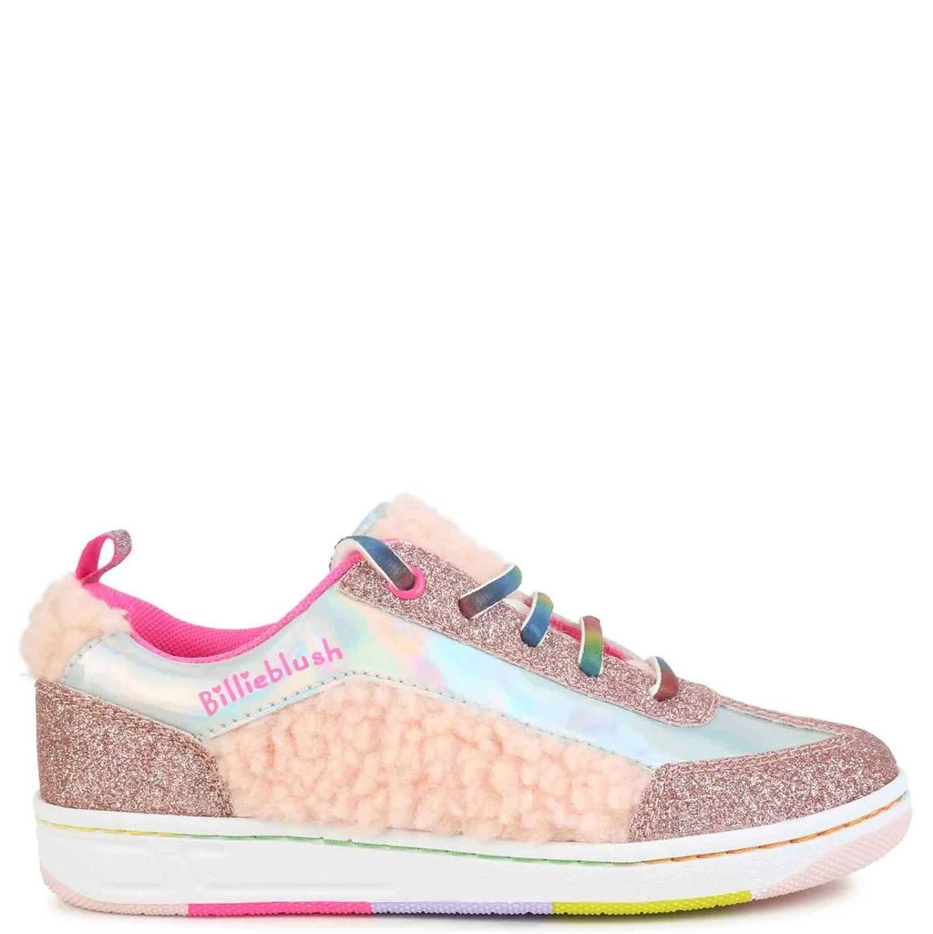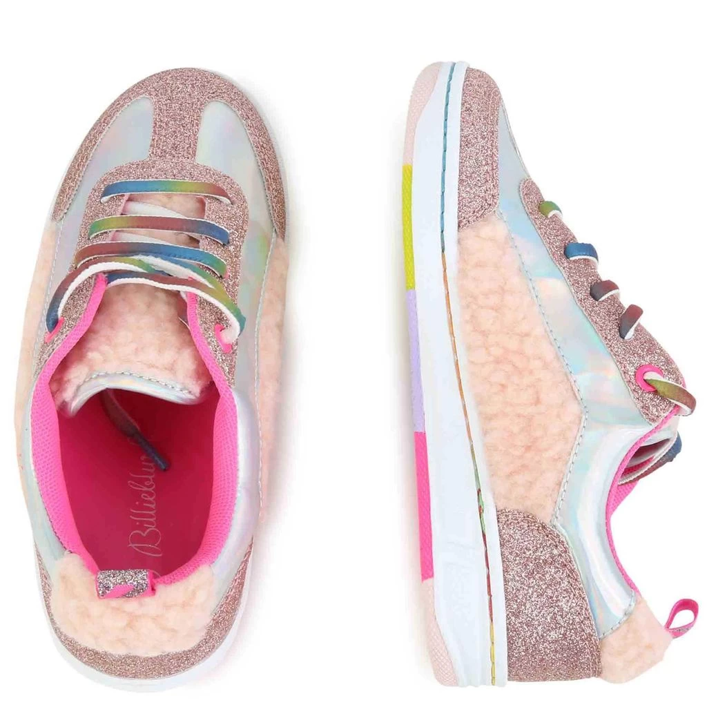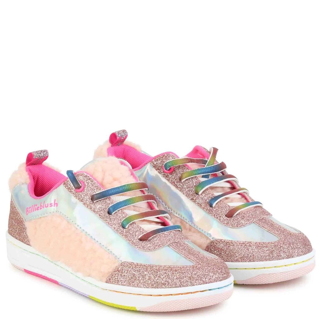 Sneakers that are as comfortable as they are gorgeous. Pink sneakers by Billieblush. The sneakers have a glittery upper with faux fur details.