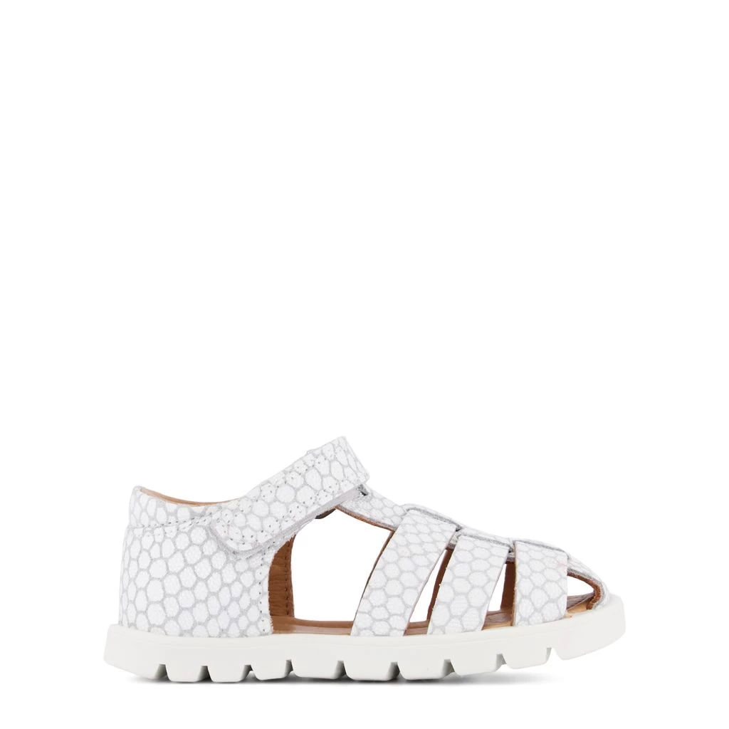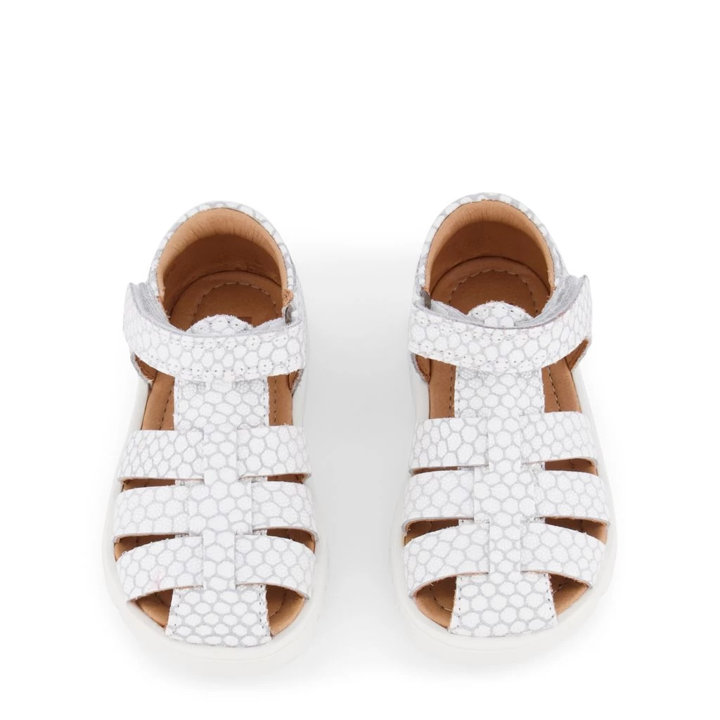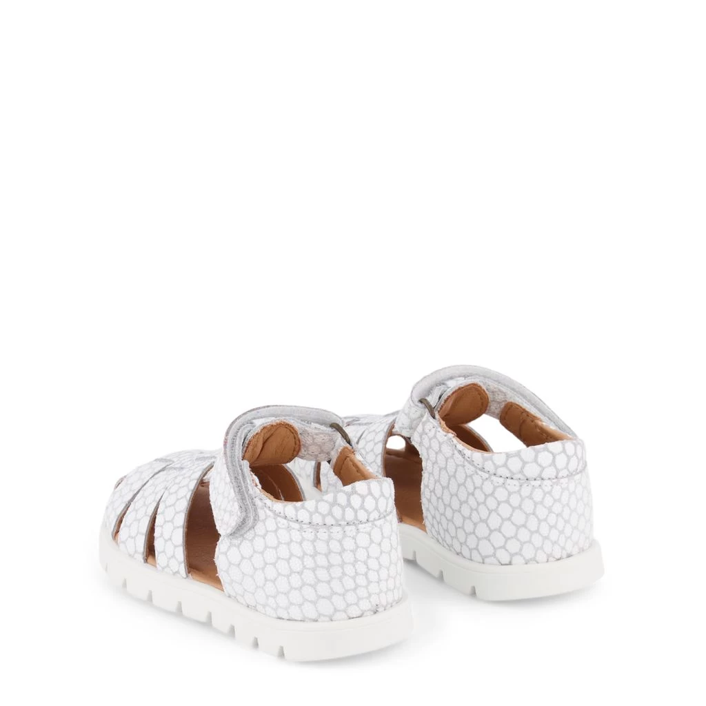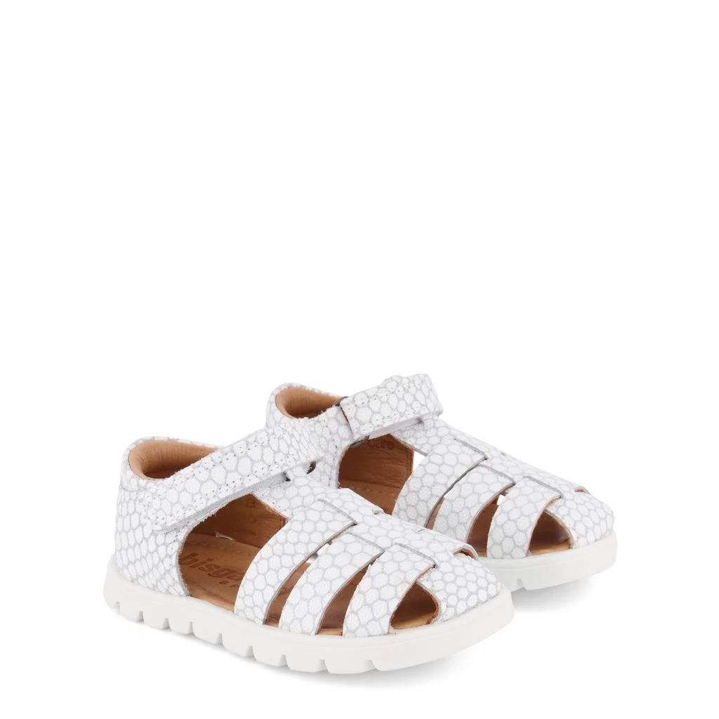 White Carlo sandals by Bisgaard. The sandals have a leather upper.