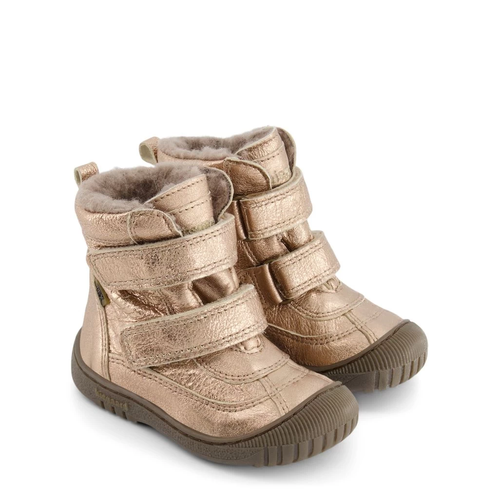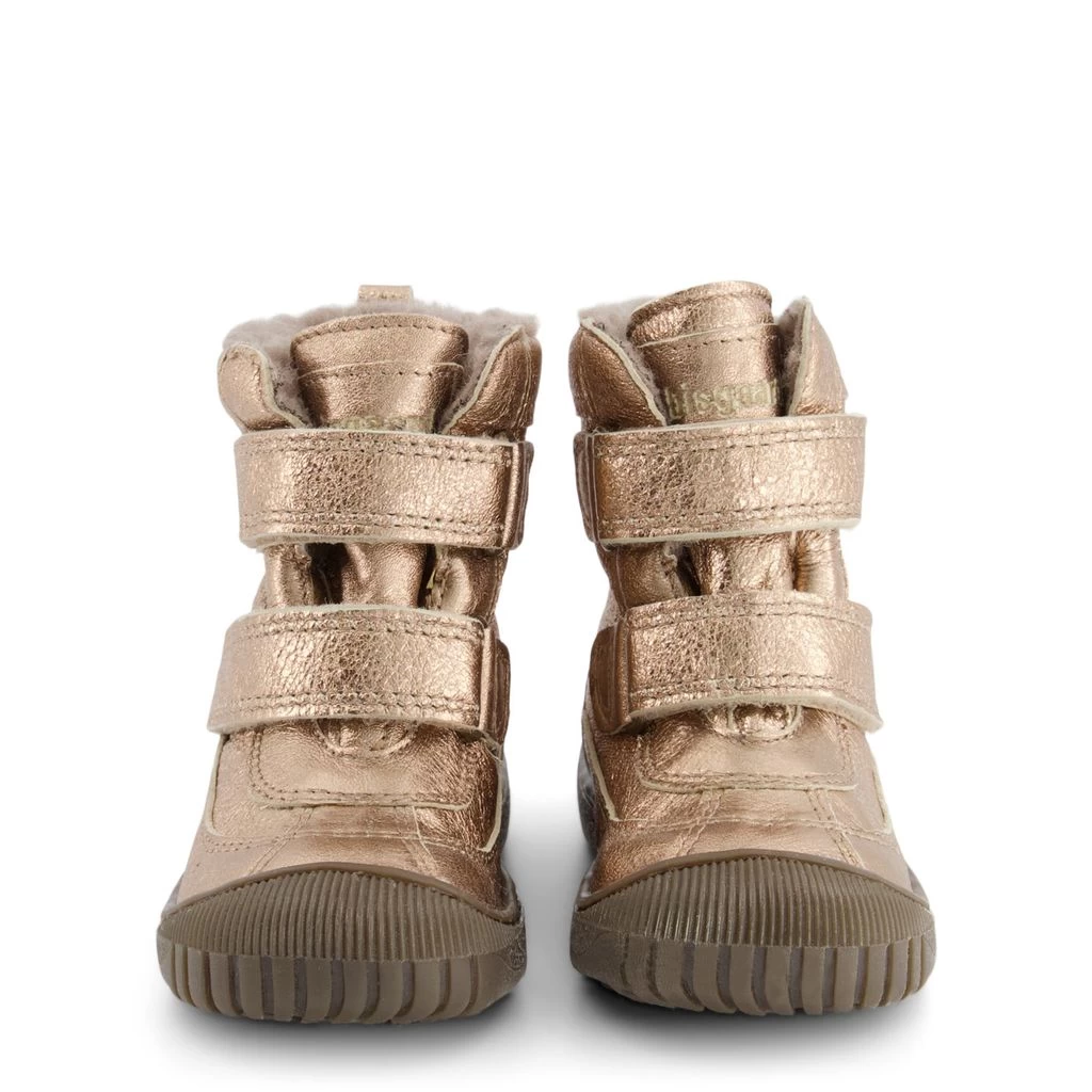 Keep little feet warm. Gold Ellis Tex boots by Bisgaard. The boots are made in Portugal and have a leather upper.
