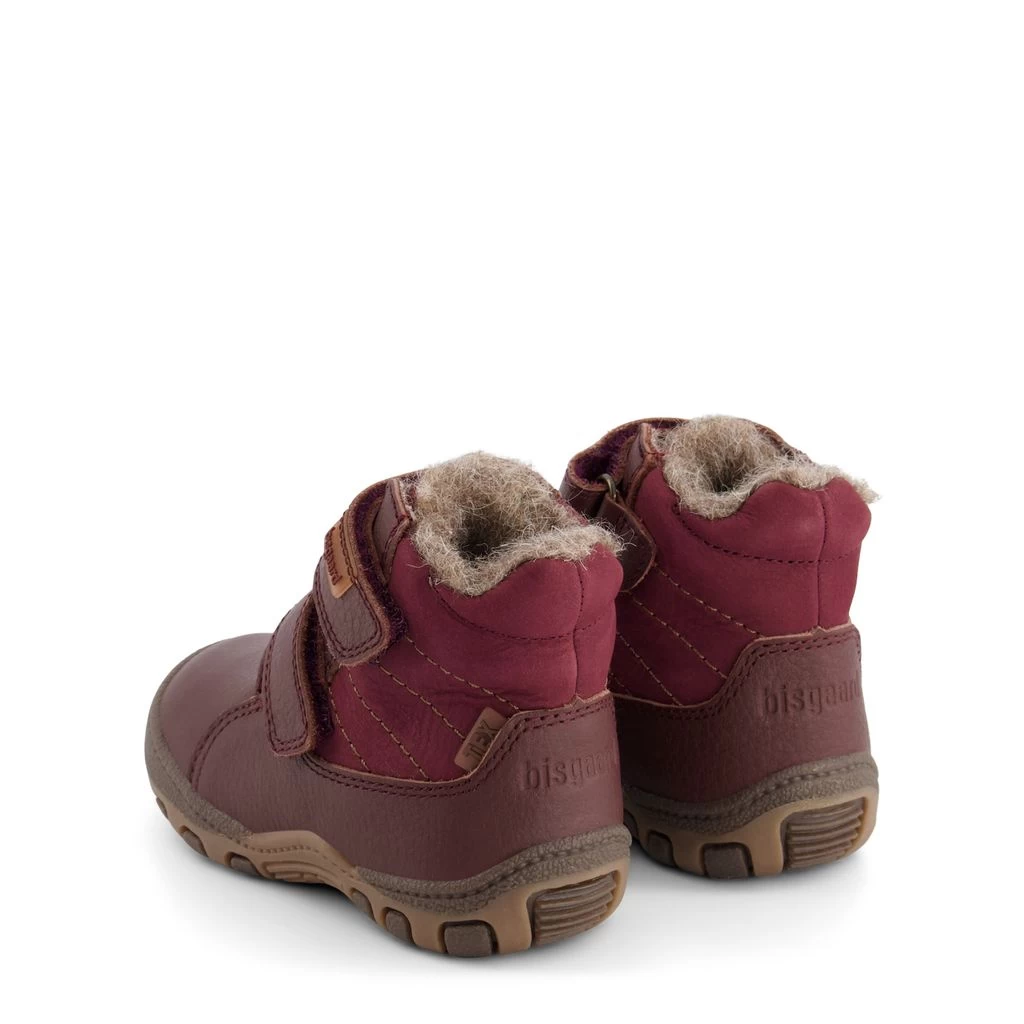 Keep little feet warm. Burgundy Hunter Tex boots by Bisgaard. The boots are made in Portugal and have a leather upper.