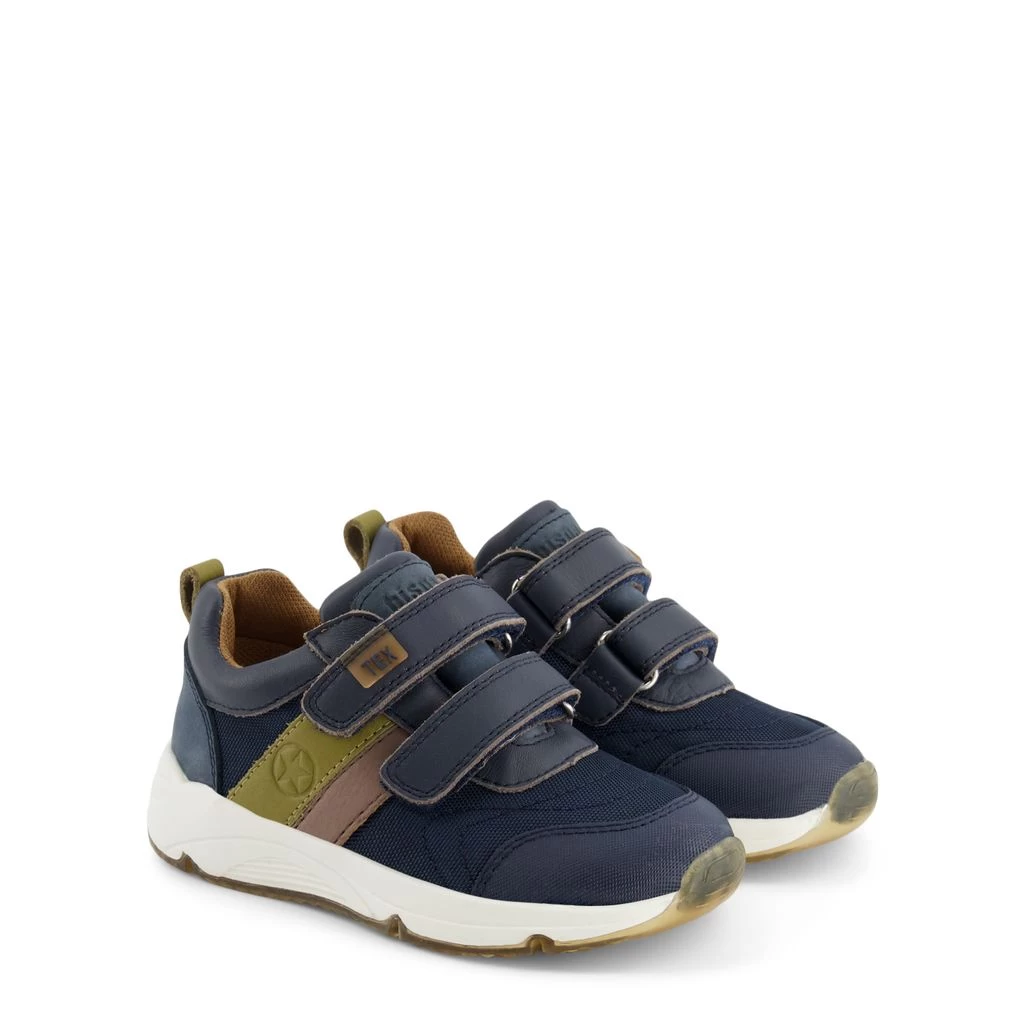 Chic and comfortable. Navy Matti sneakers by Bisgaard. The sneakers have velcro closures for easy on and off.