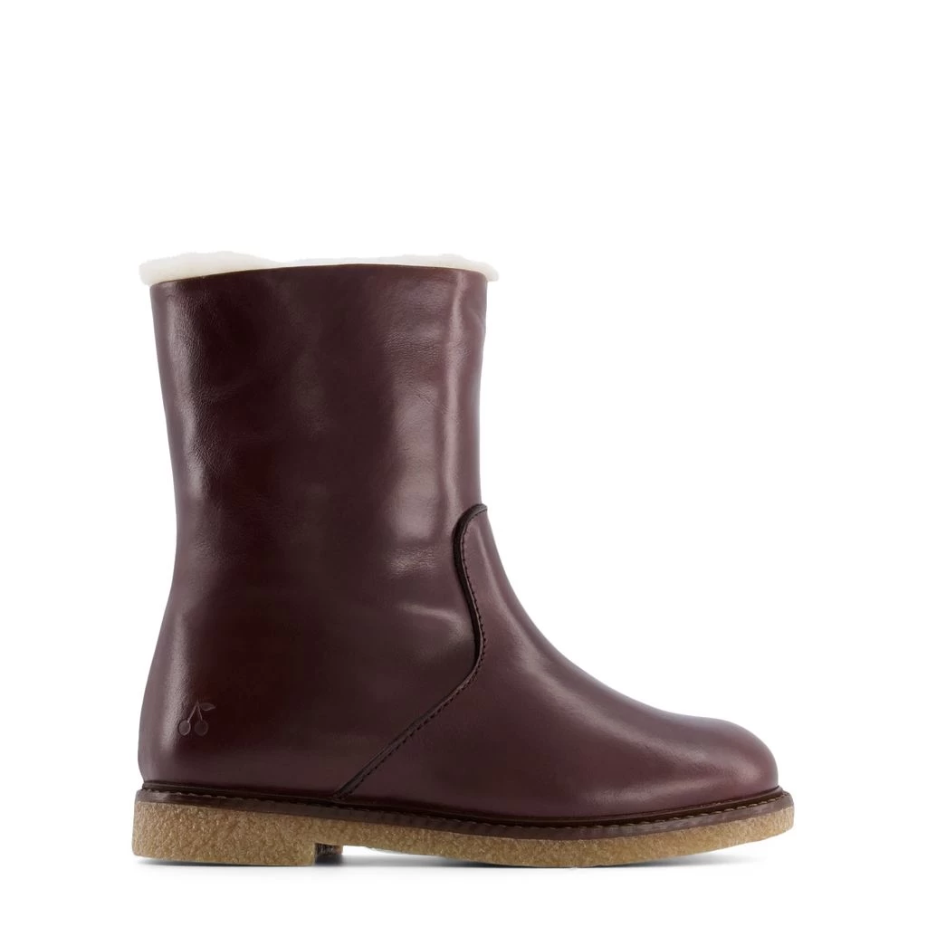 Keep little feet warm. Brown boots by Bonpoint. The boots have a slip-on design.