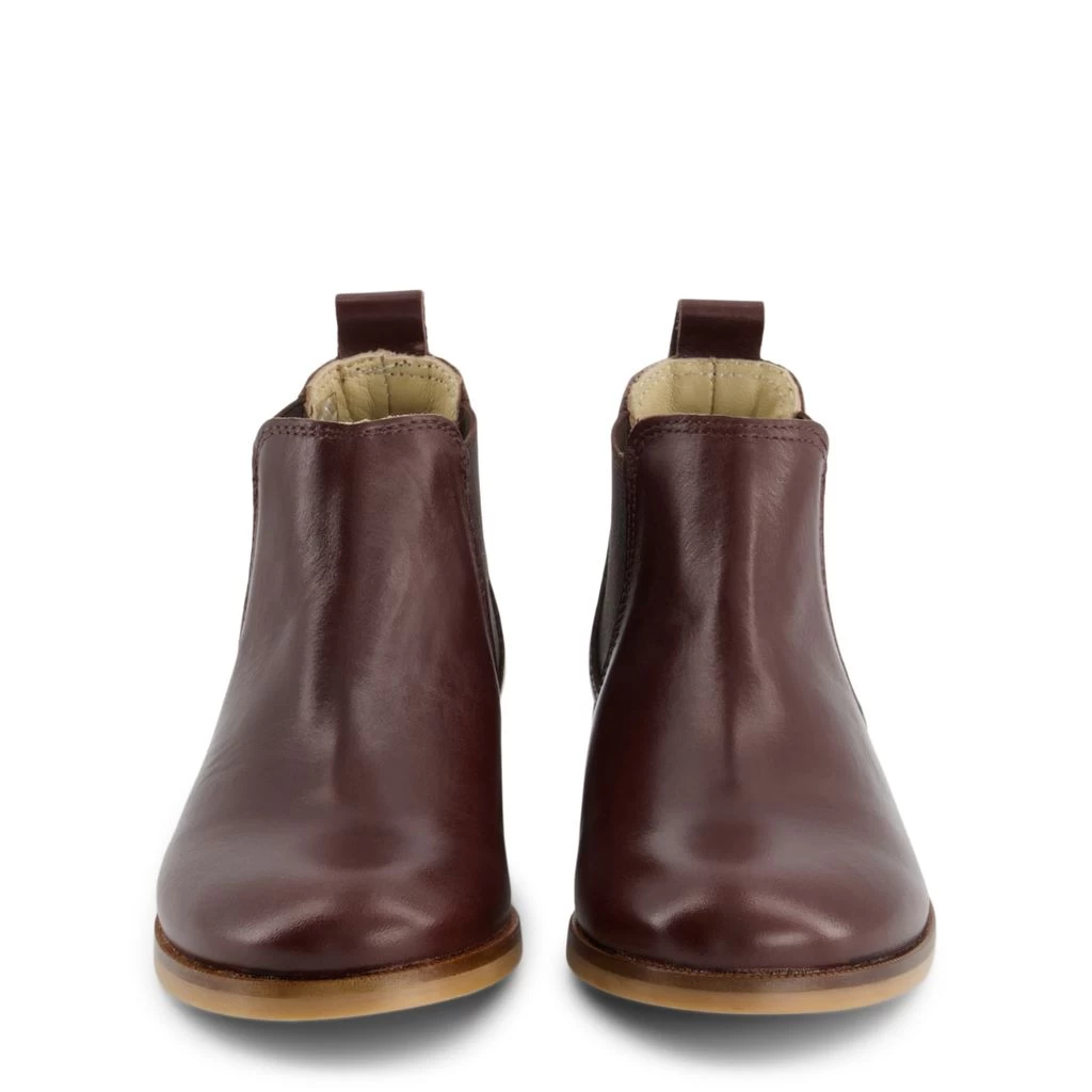 Class up any outfit with these chic shoes!. Brown Patty ankle boots by Bonpoint. The boots have a pull-tab at the heel.