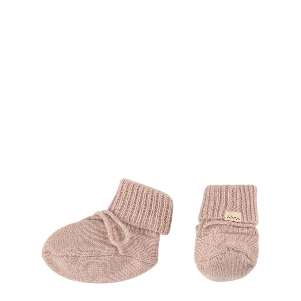 Little feet will be super comfy. Pink booties by MarMar Copenhagen. The booties have a knitted design.