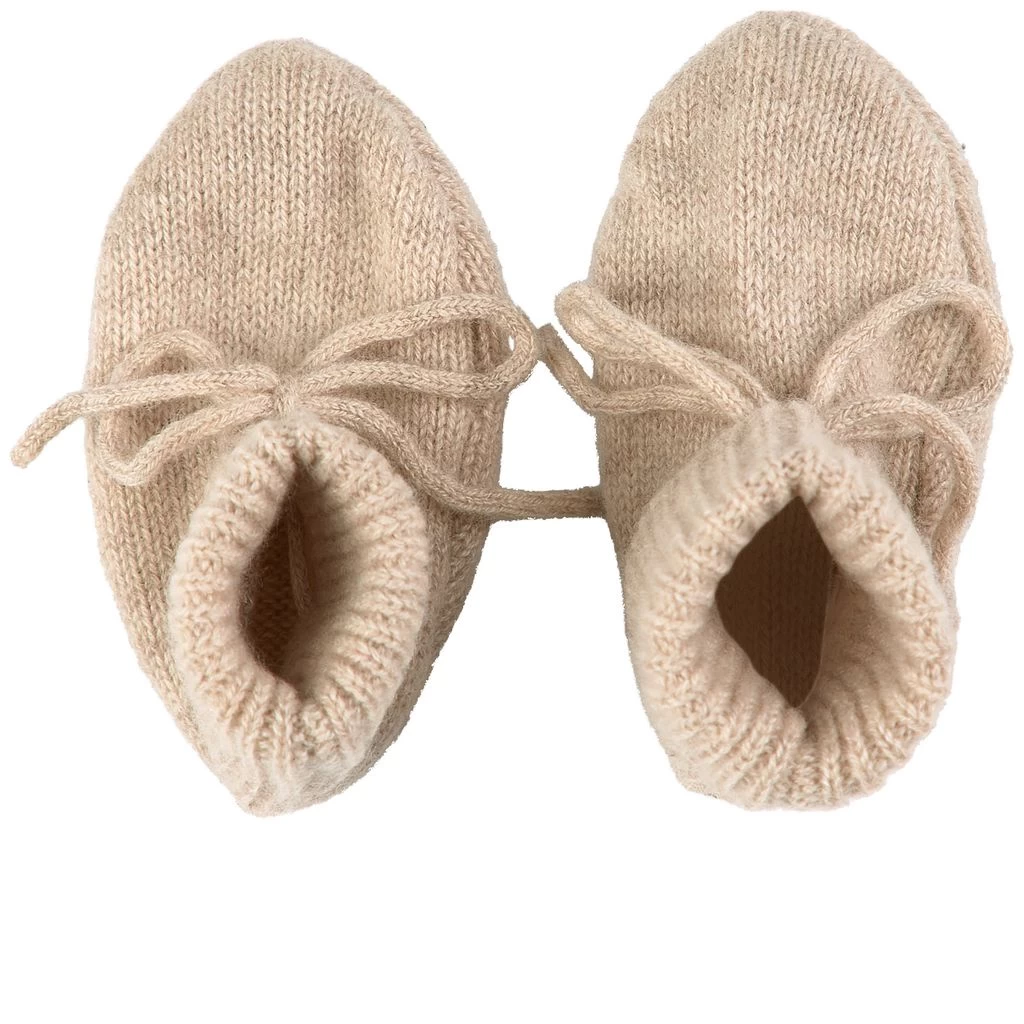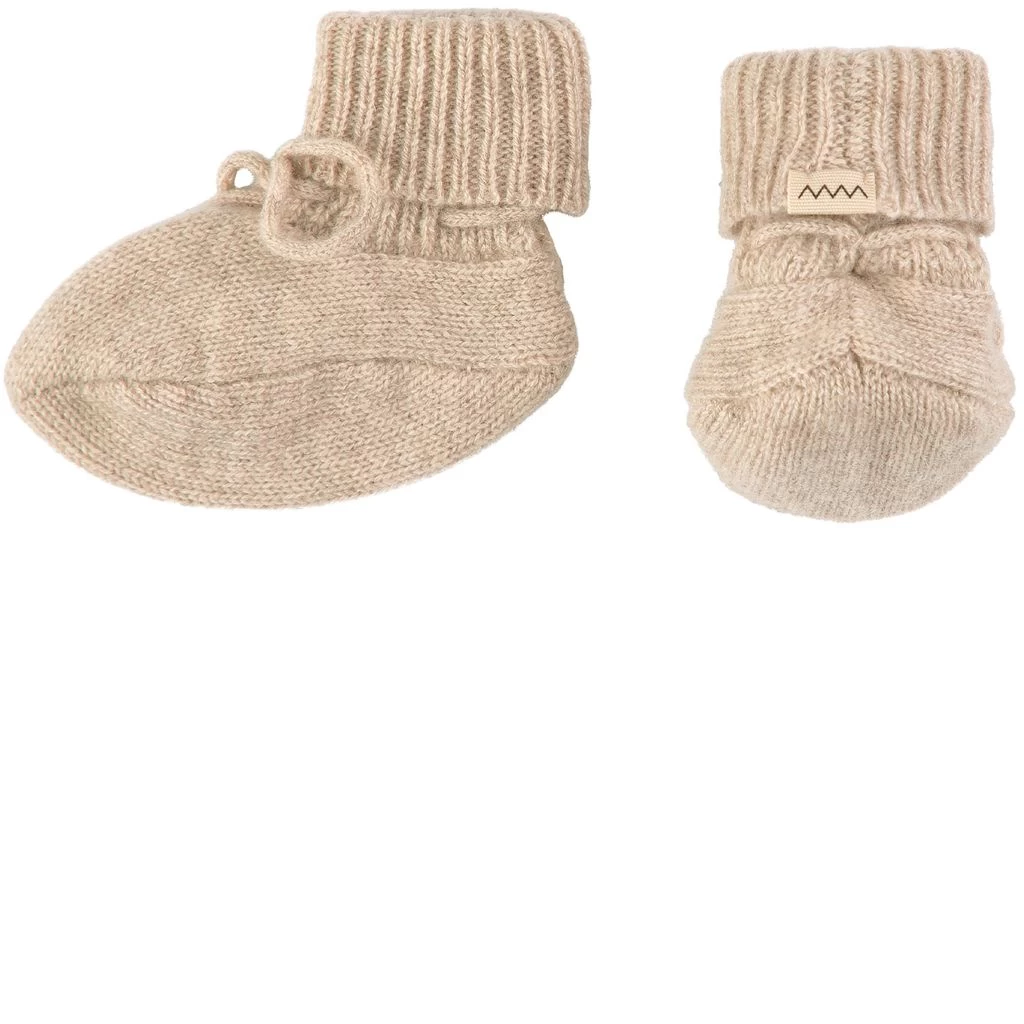 Little feet will be super comfy. Beige booties by MarMar Copenhagen. The booties have a knitted design.