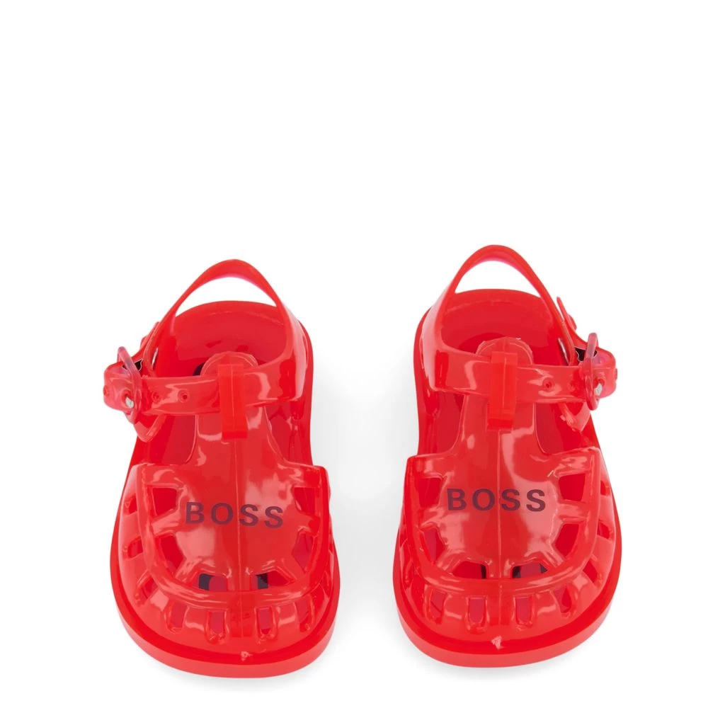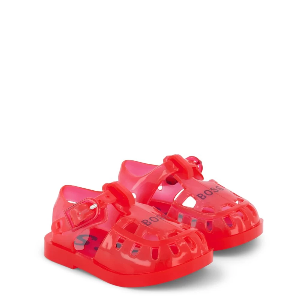 Perfect for those sunny days. Red, transparent sandals by BOSS. The sandals have an ankle strap with buckle closure.