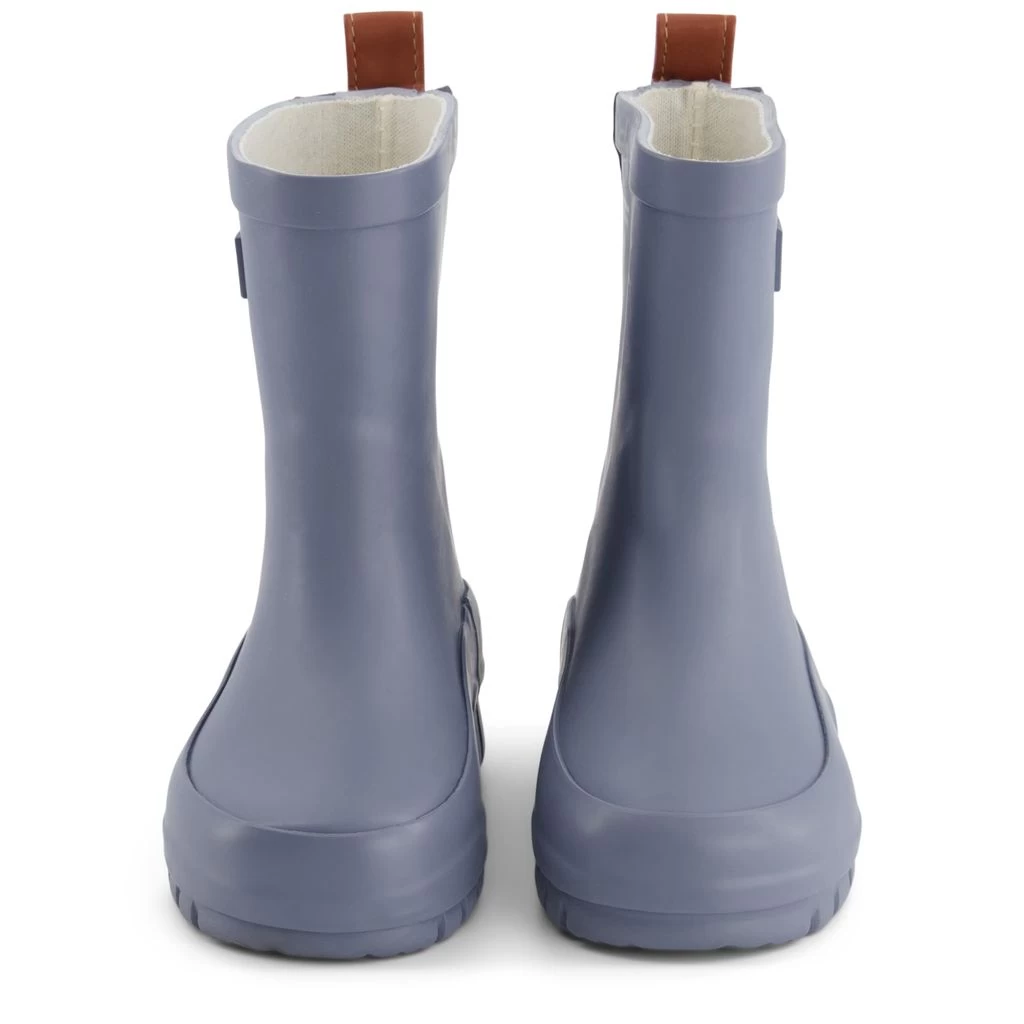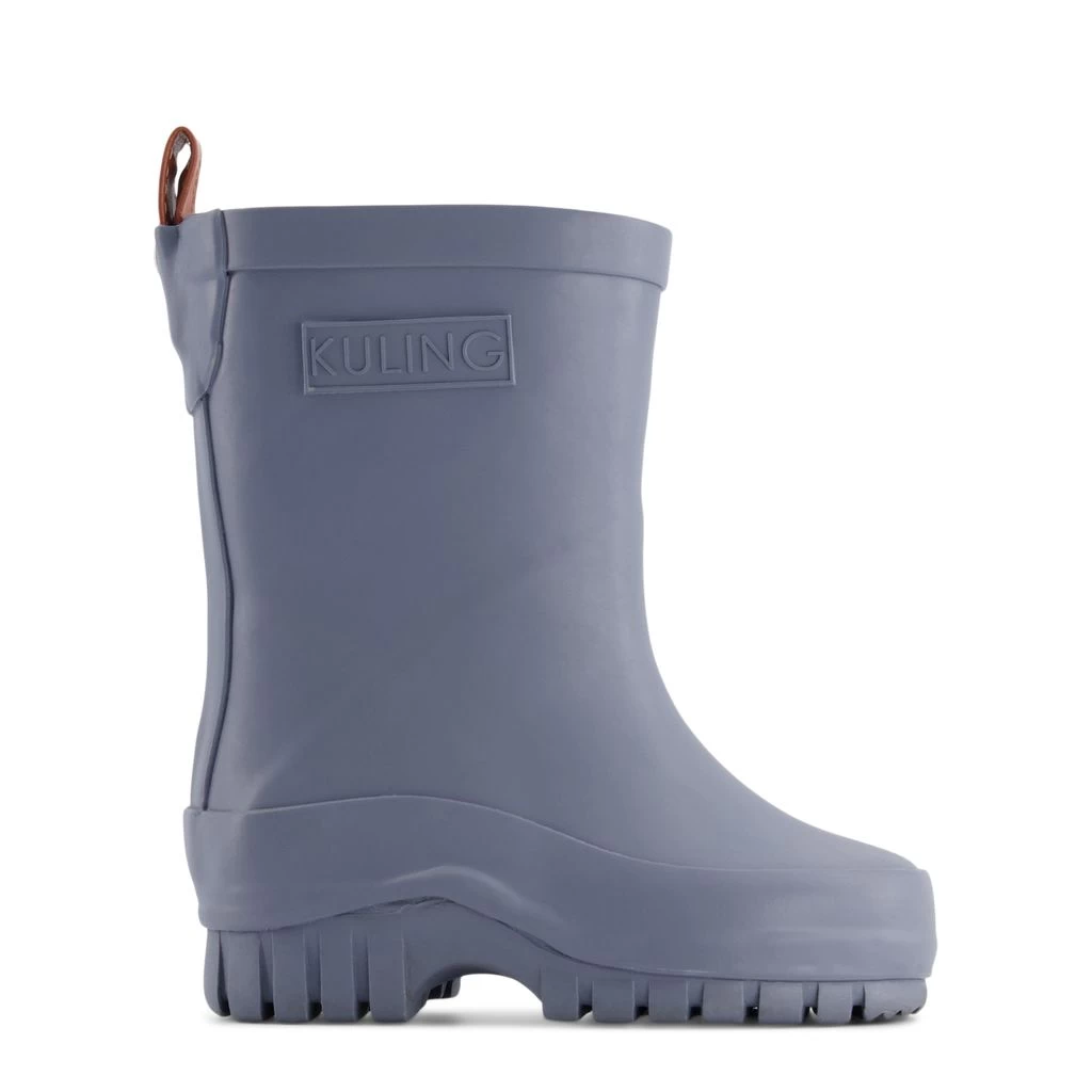 Time to jump through puddles. Blue Caracas rain boots by Kuling. The boots have a rubber upper.