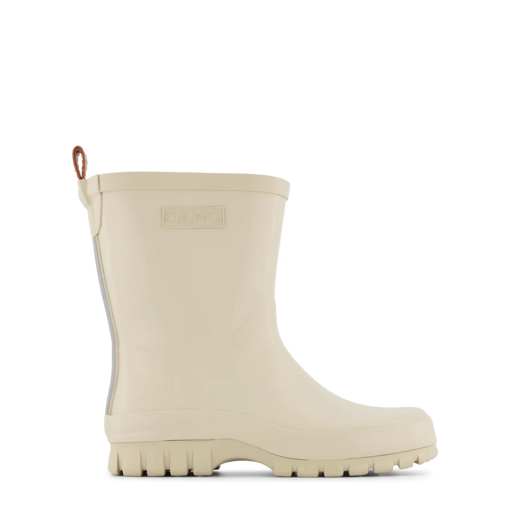 Time to jump through puddles. Beige Caracas rain boots by Kuling. The boots have welded seams.