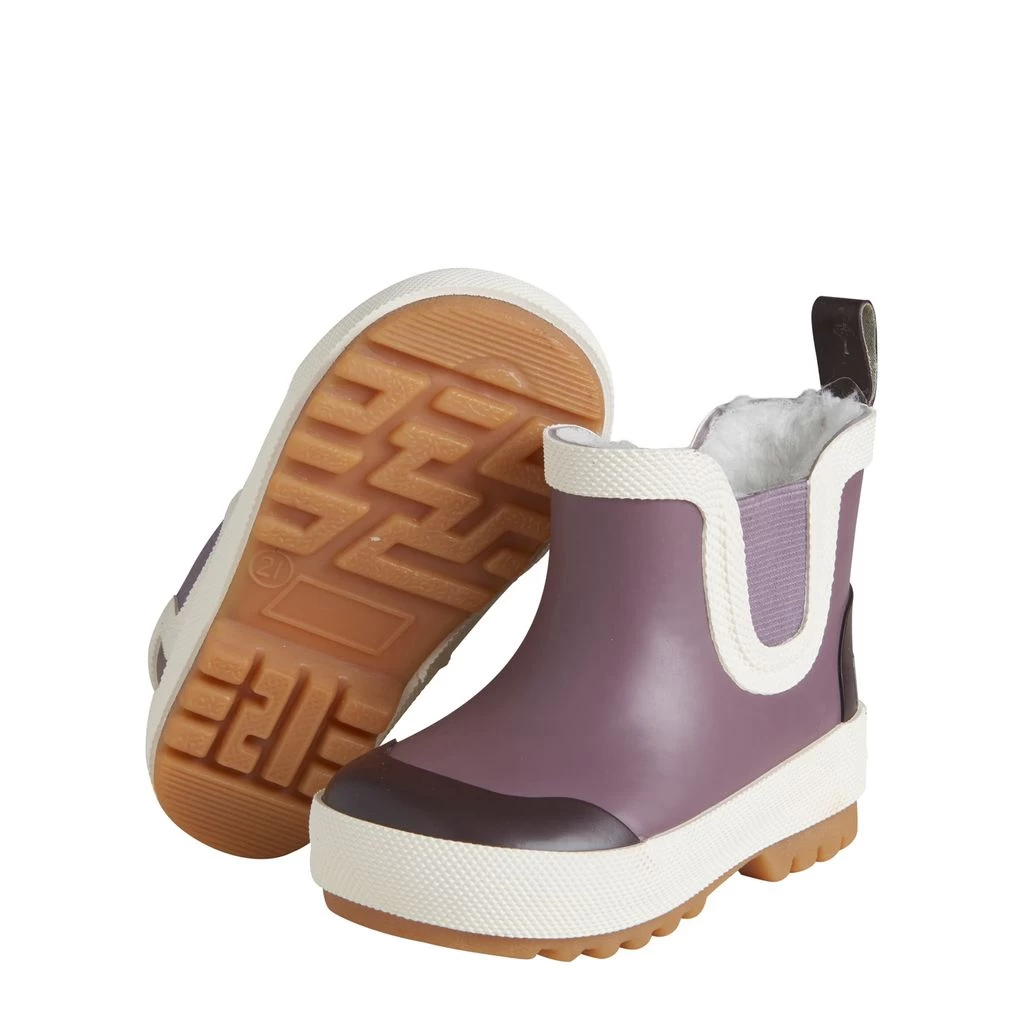 Time to jump through puddles. Purple rain boots by CeLaVi. The boots have an ankle high design.