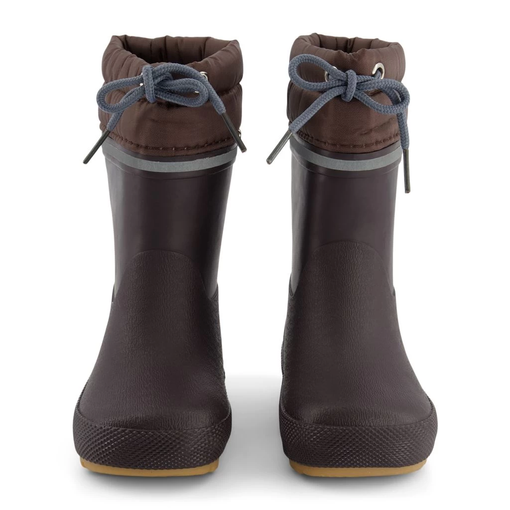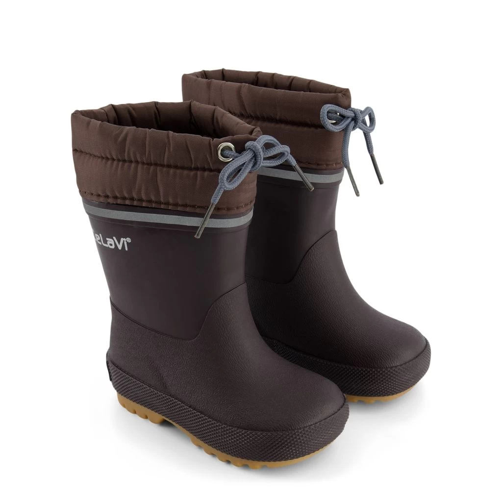 Time to jump through puddles. Brown rain boots by CeLaVi. The boots have a natural rubber upper.