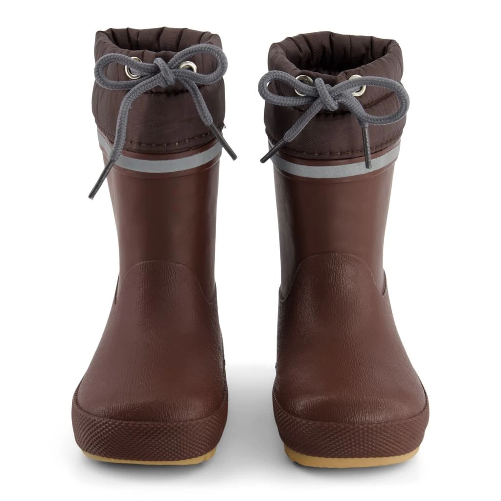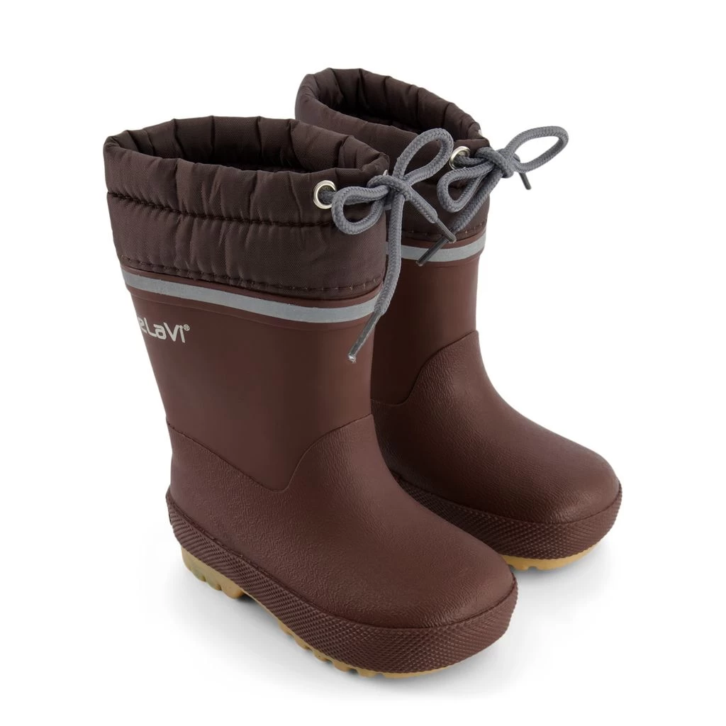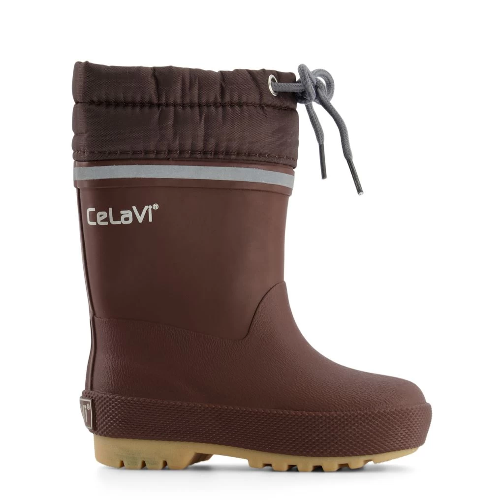 Time to jump through puddles. Brown rain boots by CeLaVi. The boots have a natural rubber upper.