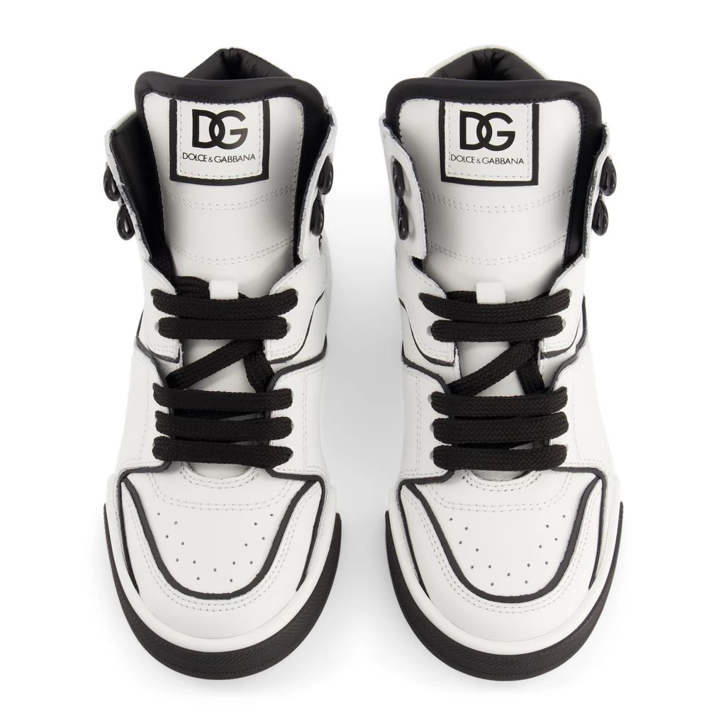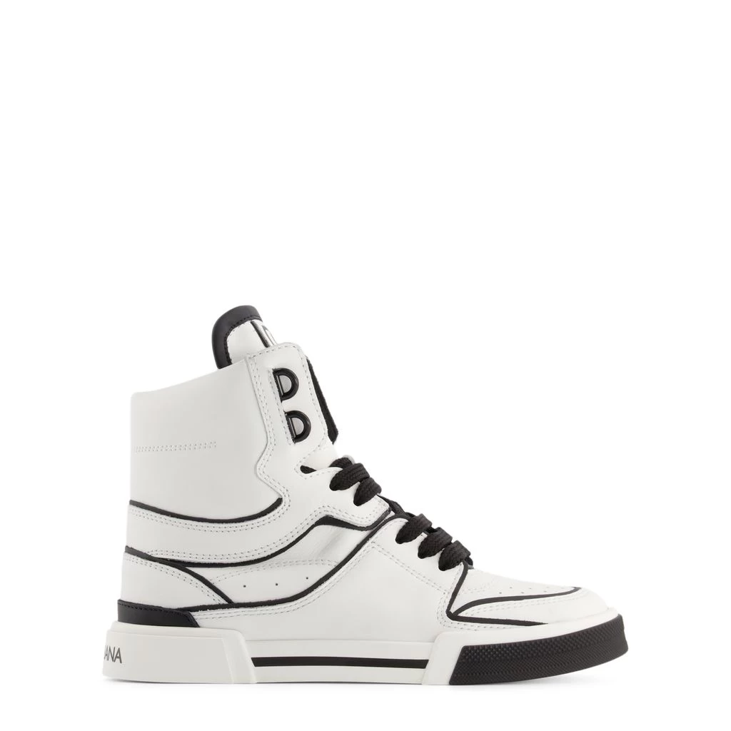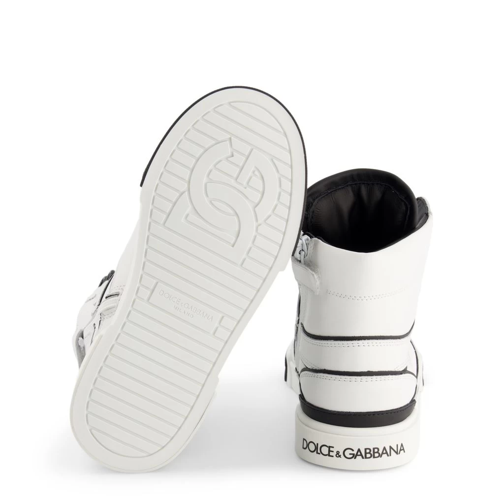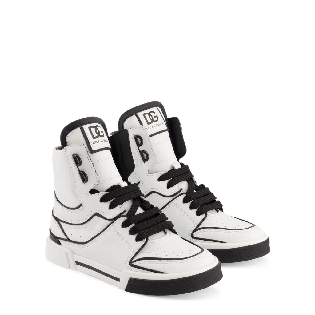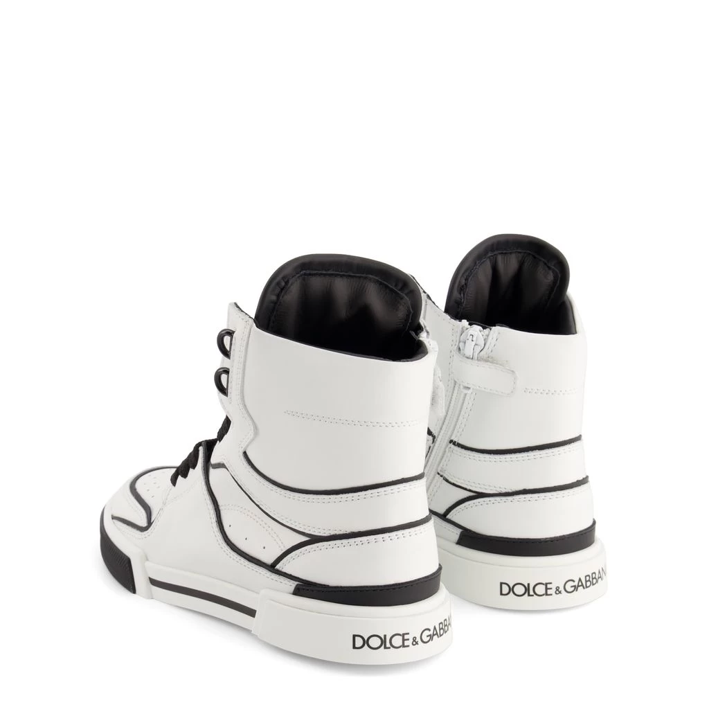 A high quality and a great fit. A purchase that will keep you comfy for weeks. White high-top sneakers by Dolce & Gabbana. The high-top sneakers are made in Italy and have a zip closure at the side.