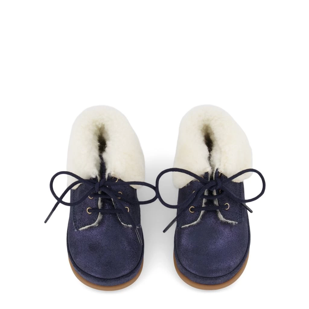 Navy Fan-Fan ankle boots by Pom d’Api. The shoes have a lace fastening at the front.