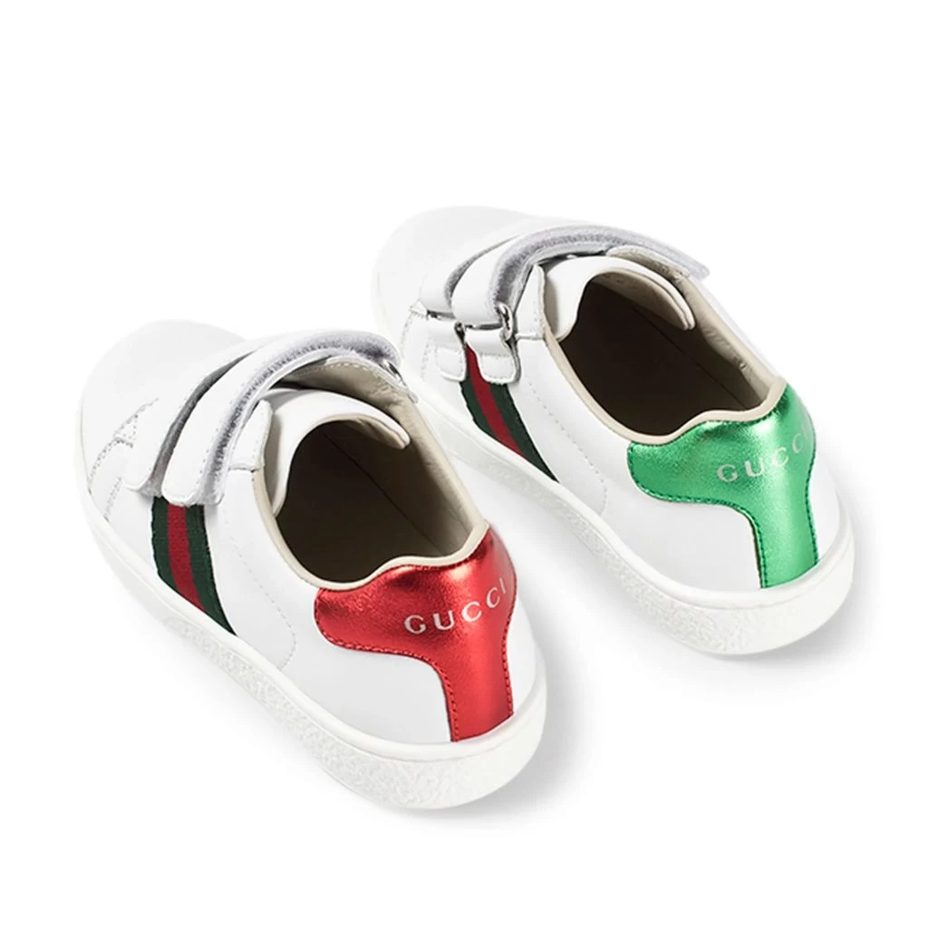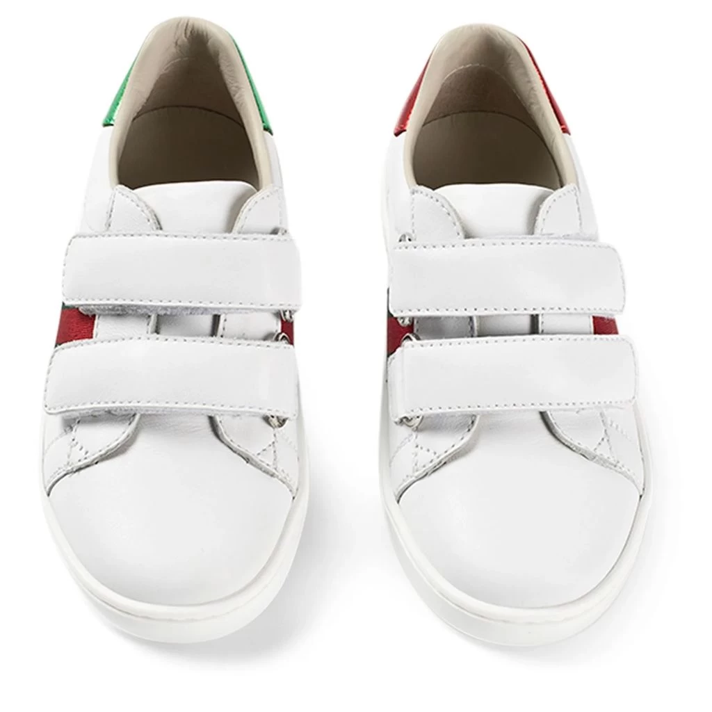 White Branded sneakers by Gucci. The sneakers are made in Italy and have a leather upper.