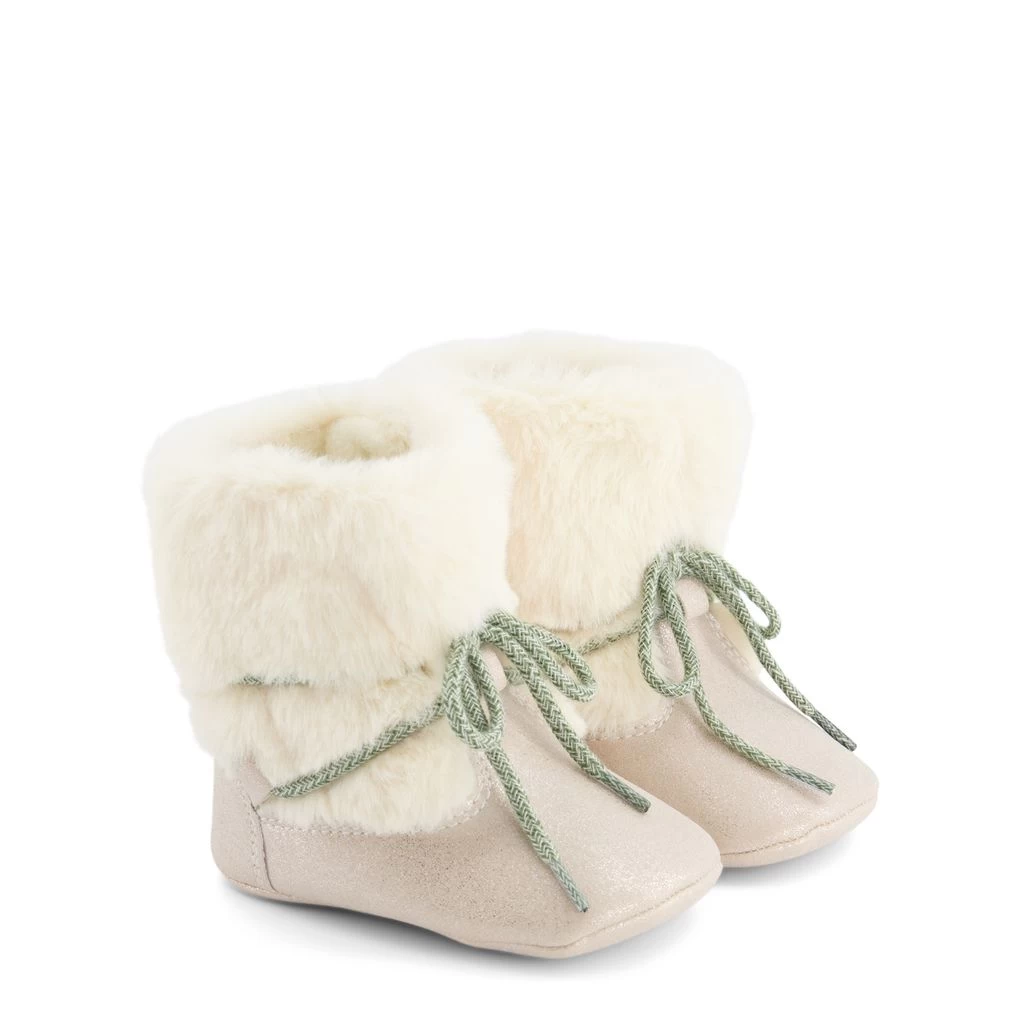 Keep little feet comfortable and stylish all day long. Beige booties by IKKS. The booties have a faux leather upper with faux fur details.