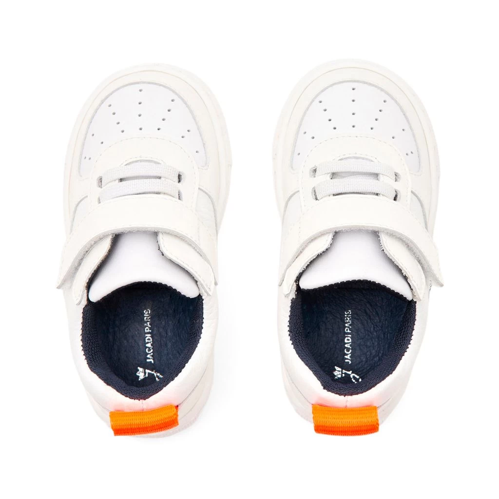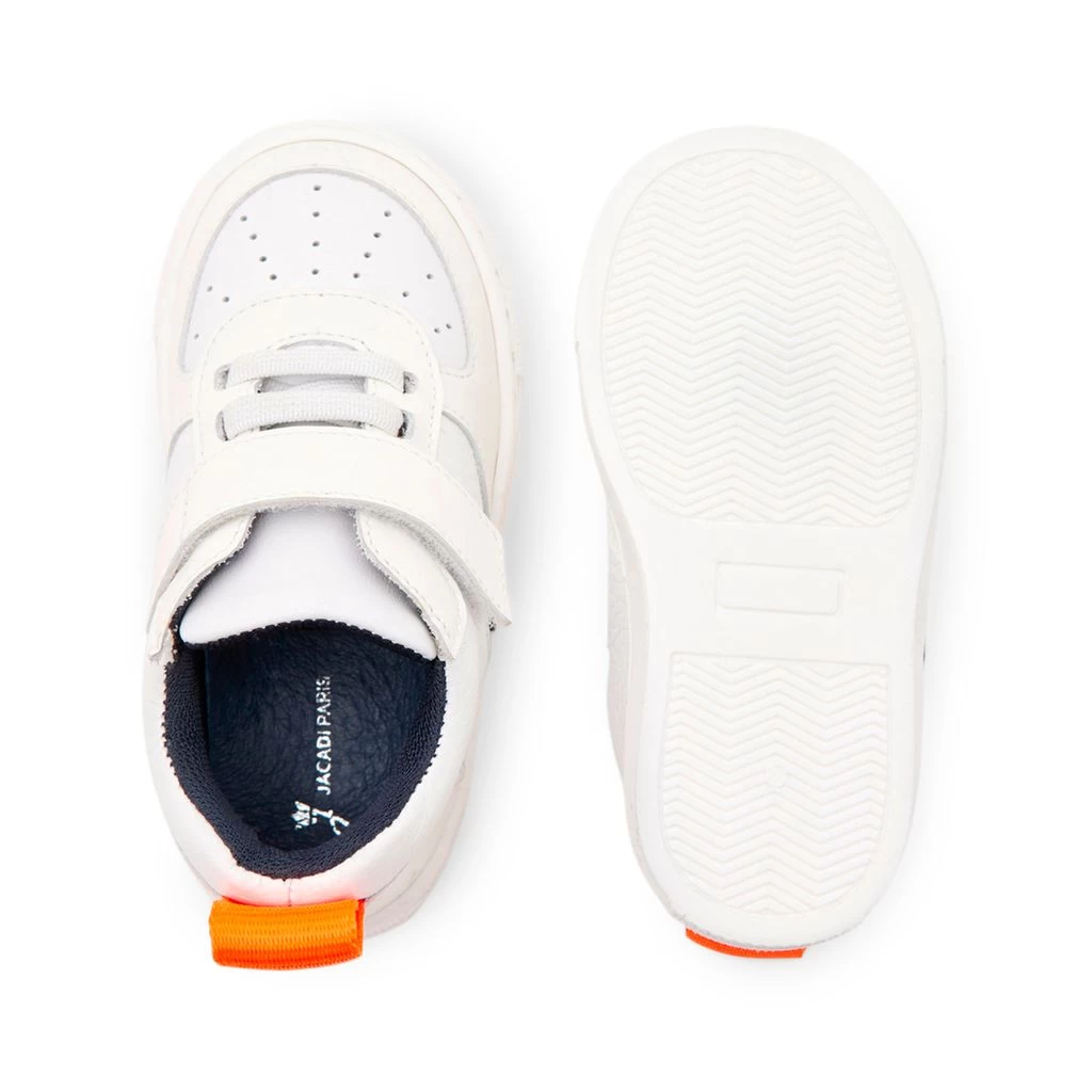 White Fred sneaker by Jacadi. The sneaker is made in Portugal and has a velcro fastening for easy on and off.