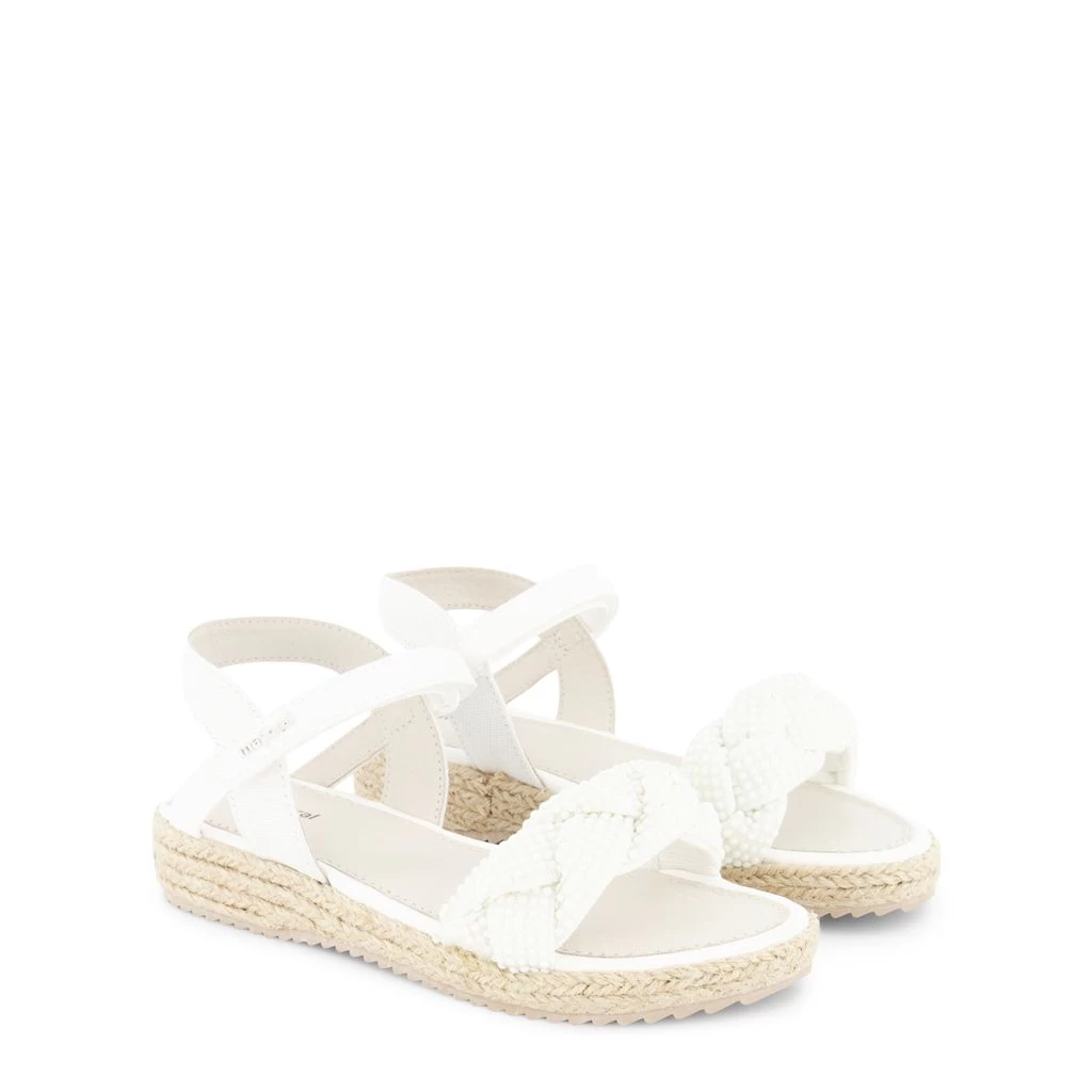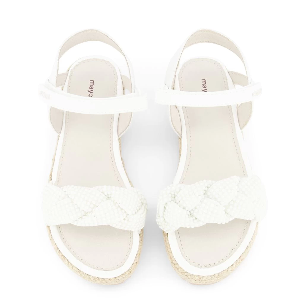 The perfect summertime look. White Jute Braid Platform sandals by Mayoral. The sandals have a shoe.