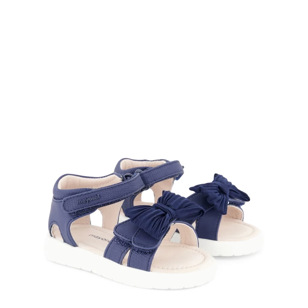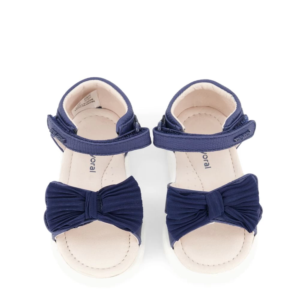 The perfect summertime look. Navy strappy sandals by Mayoral. The sandals have a velcro closure for easy on and off.