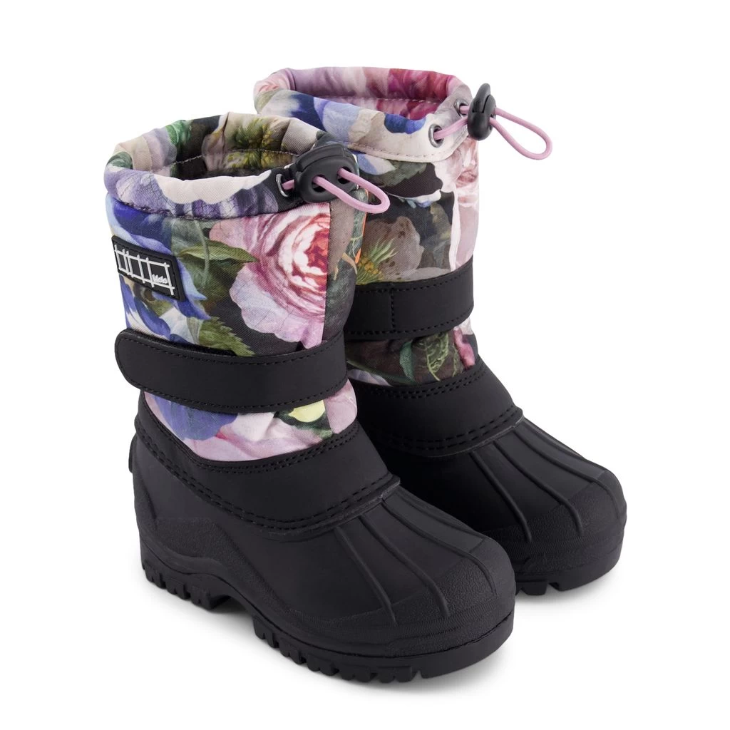 Be warm and comfy on winter adventures. Purple Driven winter boots by Molo. The winter boots have an adjustable cinch cord at the top.