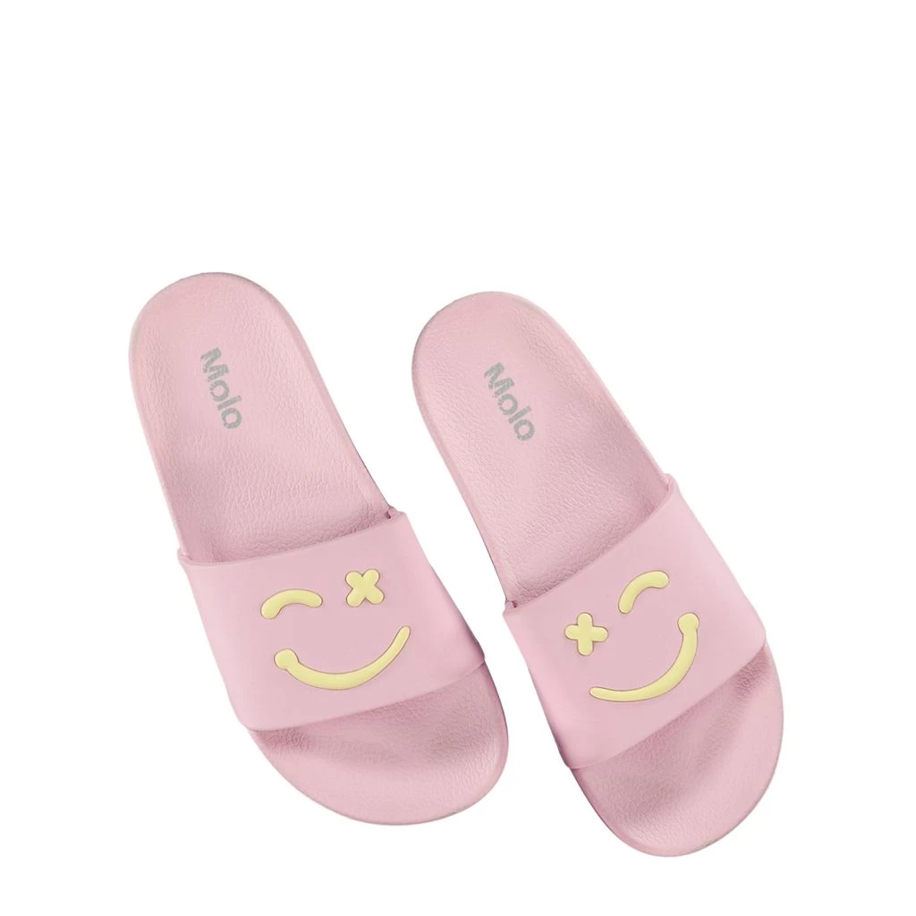 Perfect for some fun on the beach. Pink Zhappy slide sandals by Molo. The slide sandals have a textured footbed.
