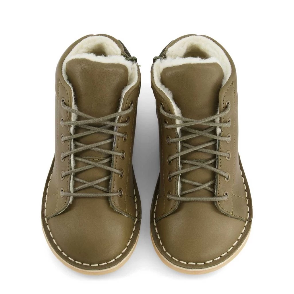 Keep little feet dry and warm with these comfy boots. Green Monkey boots by Young Soles. The boots have a leather upper.