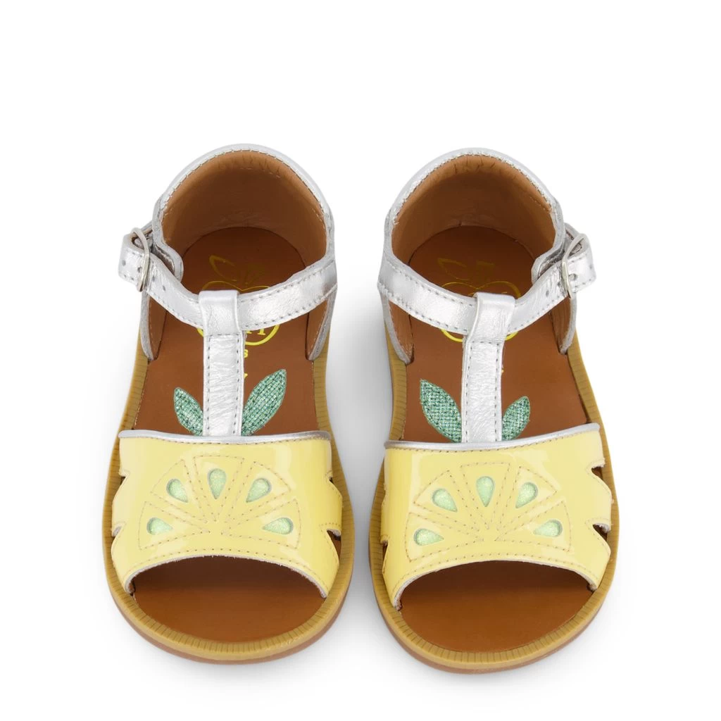 Silver Poppy Agrume sandals by Pom d’Api. The sandals have a leather upper.