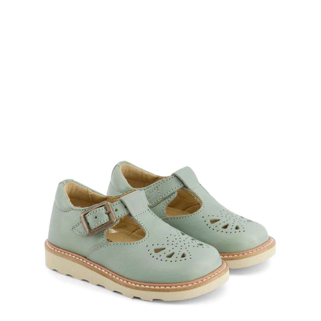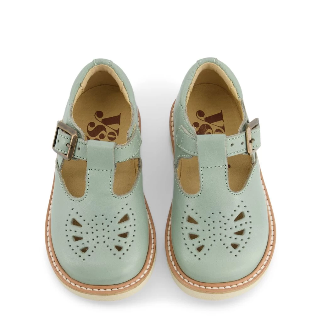 Perfect for those sunny days. Green Rosie T-Bar shoes by Young Soles. The shoes are made in Portugal and have a leather upper.