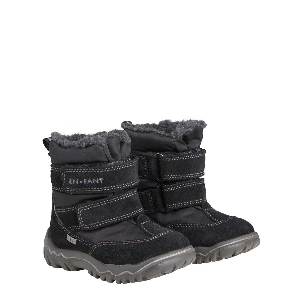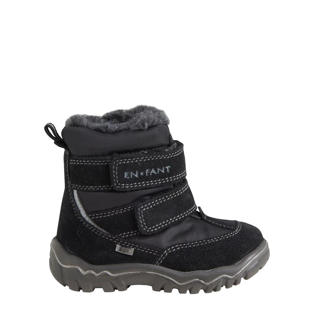 Let’s play in the snow!. Black snow boots by EnFant. The boots have adjustable velcro closures for easy on and off.