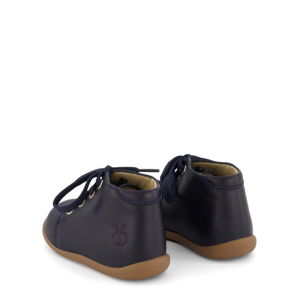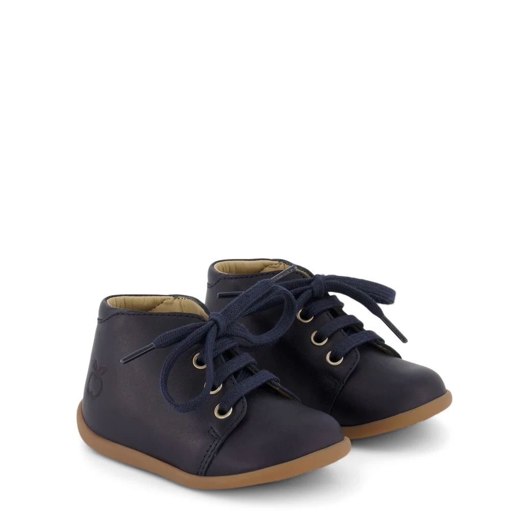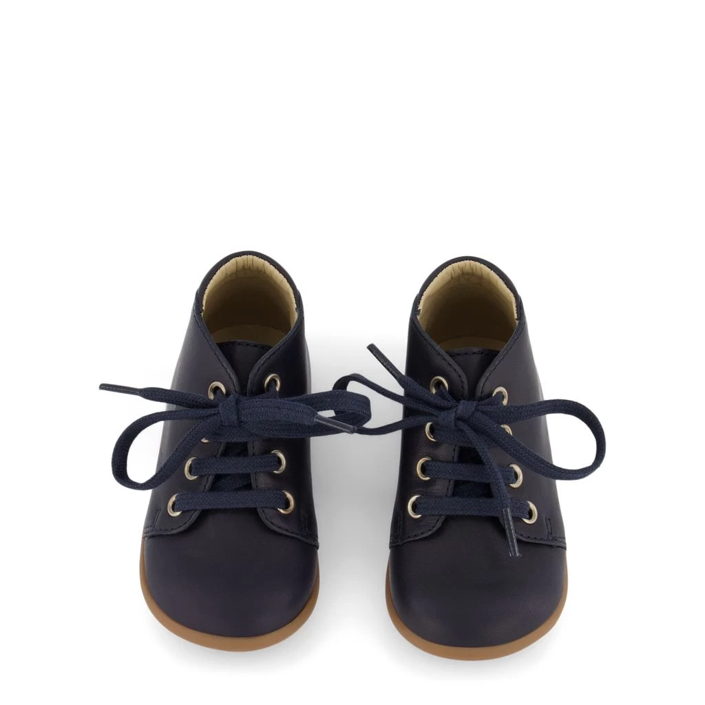 Navy Stand Up crib shoes by Pom d’Api. The crib shoes have a lace fastening at the front for a perfect fit.