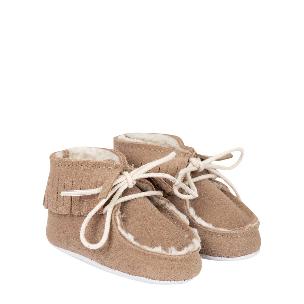 Little feet will be super comfy. Beige slippers by Tartine et Chocolat. The slippers are made in France and have a shoe.