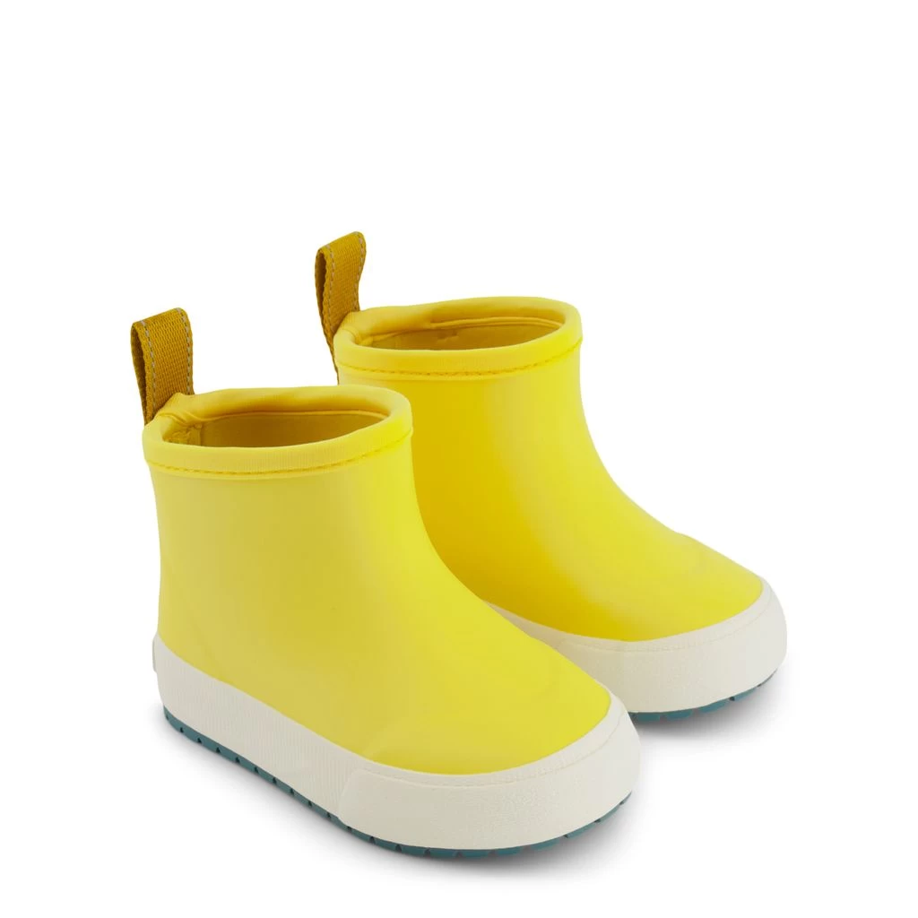 Keep little feet dry with these comfortable and waterproof boots. Yellow Lunda rain boots by Tretorn. The boots have an ankle high design.