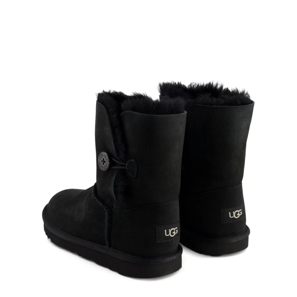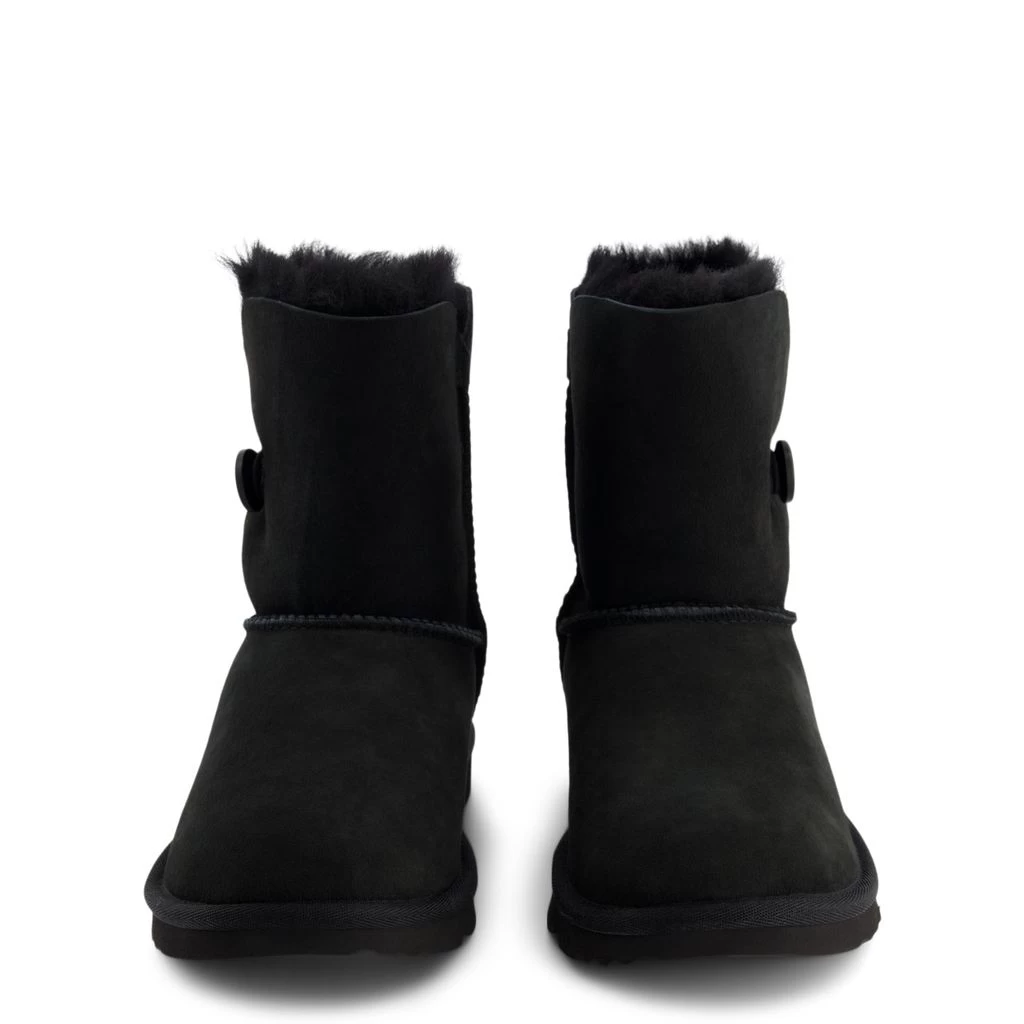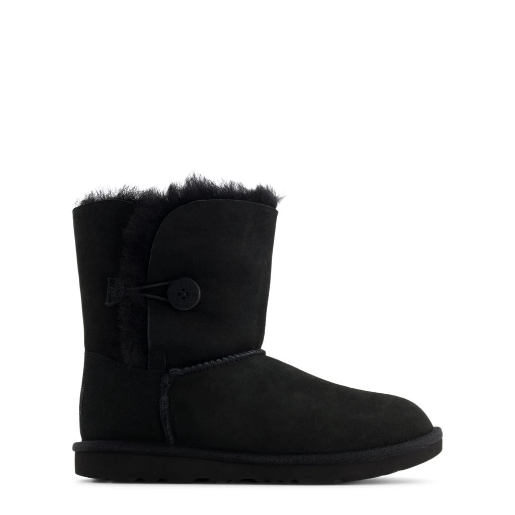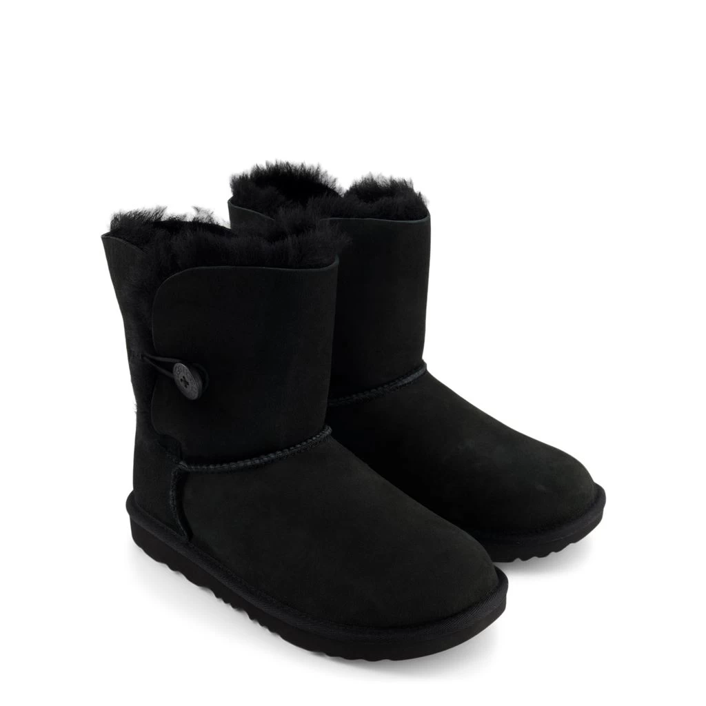 Let’s play in the snow!. Black Bailey Button II snow boots by UGG. The boots have a leather upper.