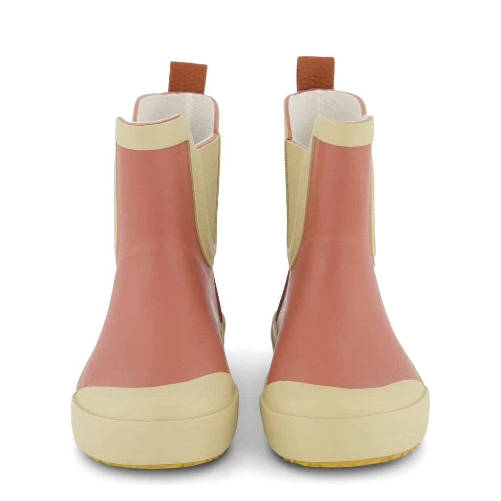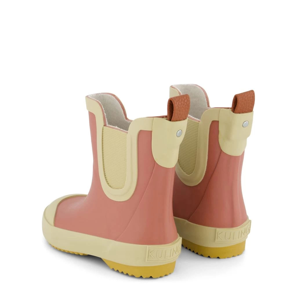 Time to jump through puddles. Pink Wells rain boots by Kuling. The boots have welded seams.