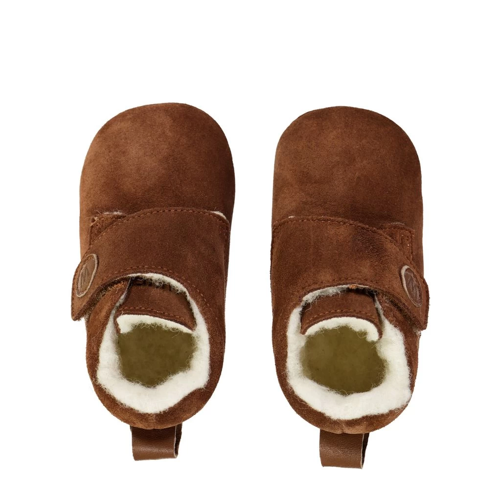 Keep little feet comfortable and stylish all day long. Brown Angel slippers by Wheat. The slippers have a leather upper.