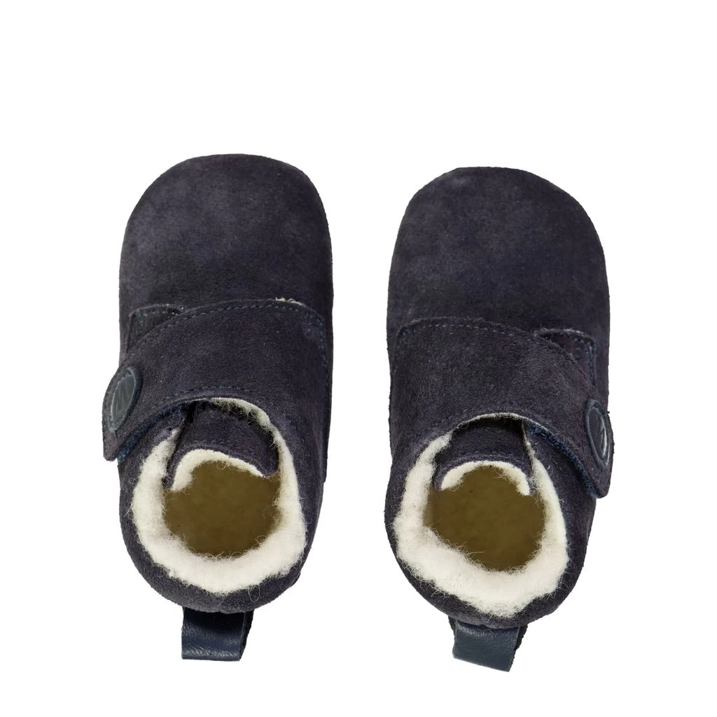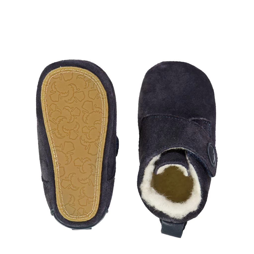 Keep little feet comfortable and stylish all day long. Navy Angel slippers by Wheat. The slippers have a leather upper.