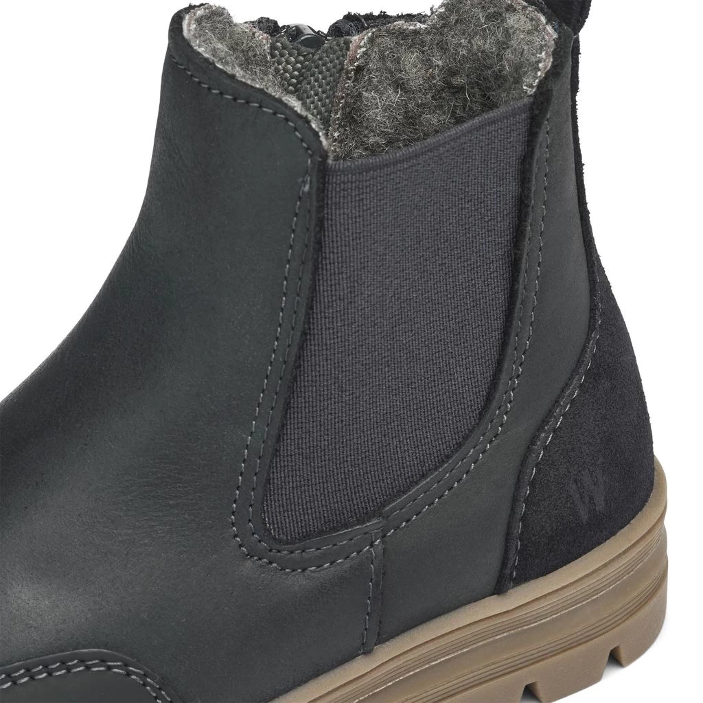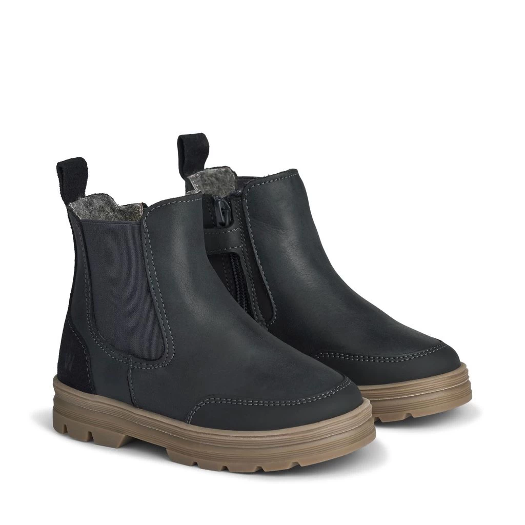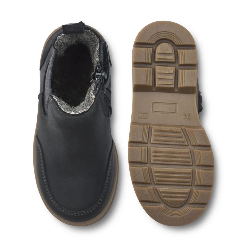 Little feet can walk in style. Black Benne boots by Wheat. The boots are made in Portugal and have a leather upper.