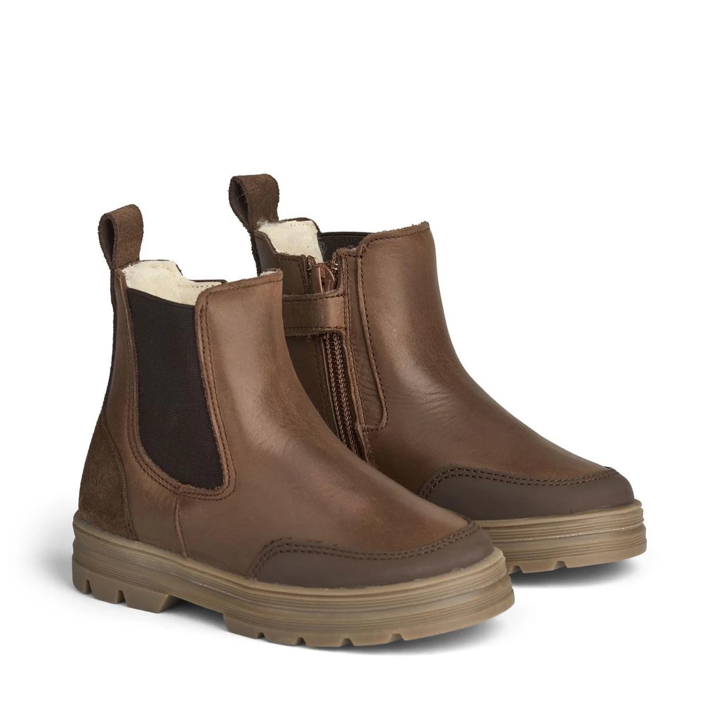 Little feet can walk in style. Brown Benne boots by Wheat. The boots are made in Portugal and have a leather upper.