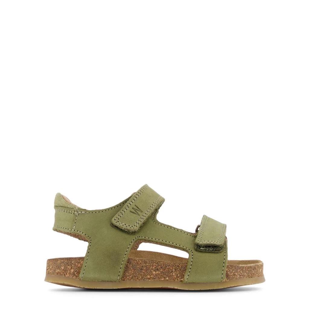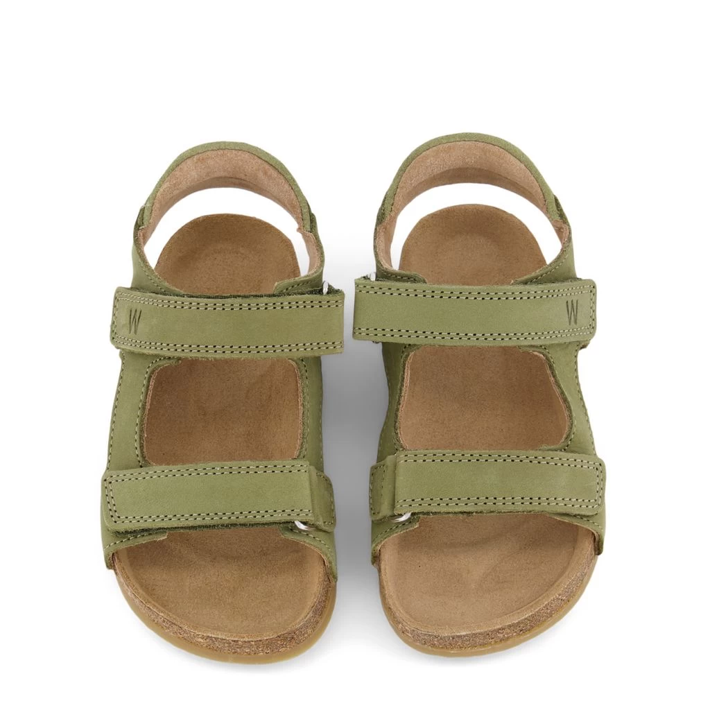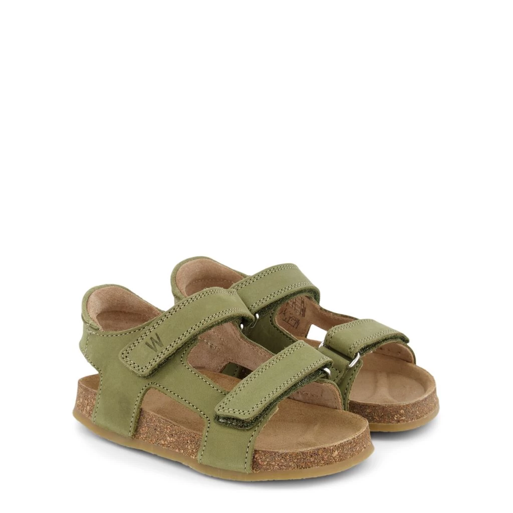 Green Corey sandals by Wheat. The sandals are made in Portugal and have adjustable velcro closures.