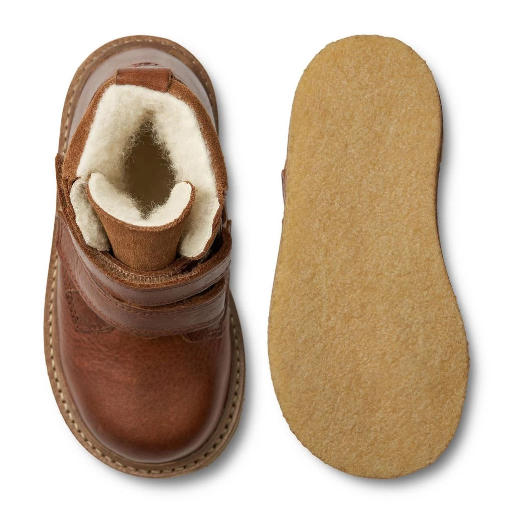 Little feet can walk in style. Brown Hanan boots by Wheat. The boots are made in Portugal and have a leather upper.