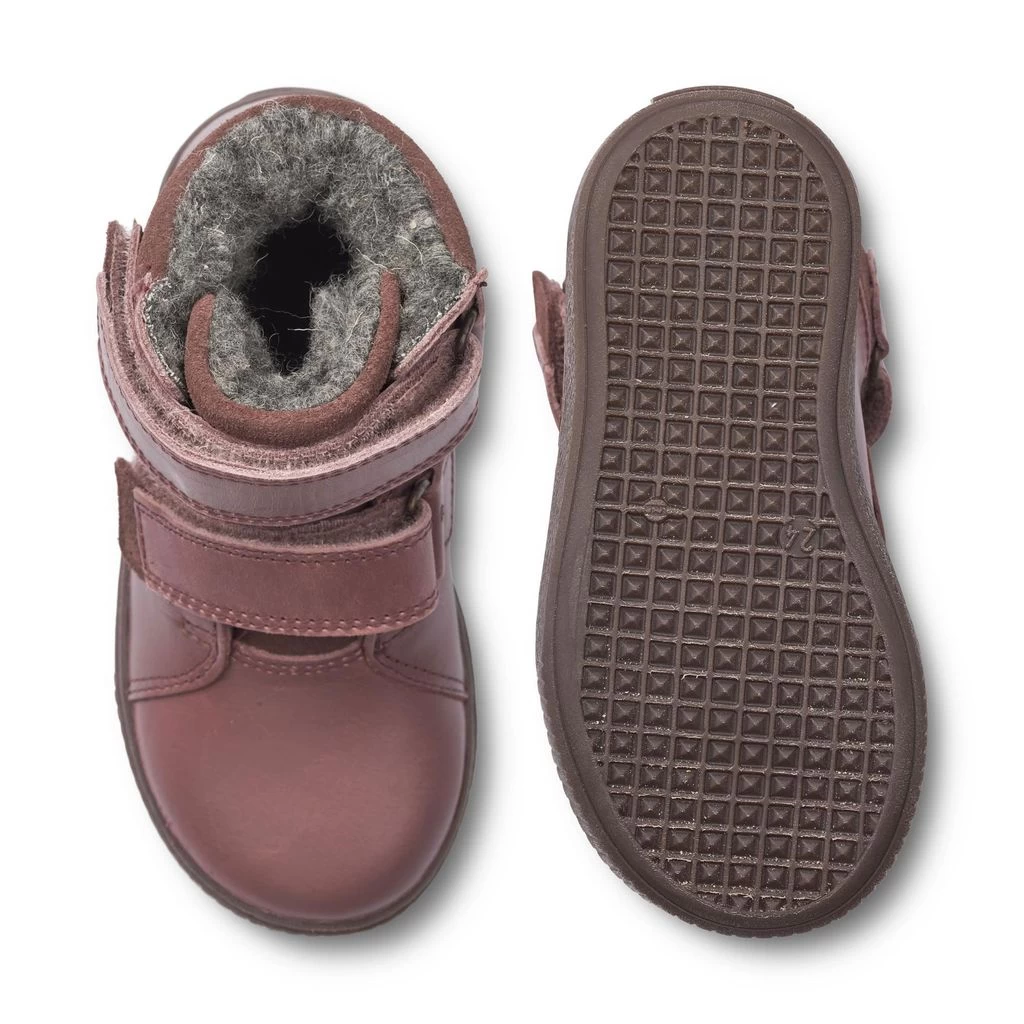 Keep little feet warm. Purple Van boots by Wheat. The boots are made in Portugal and have a leather upper.